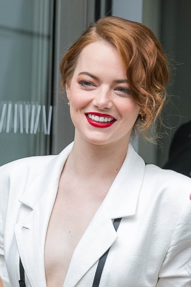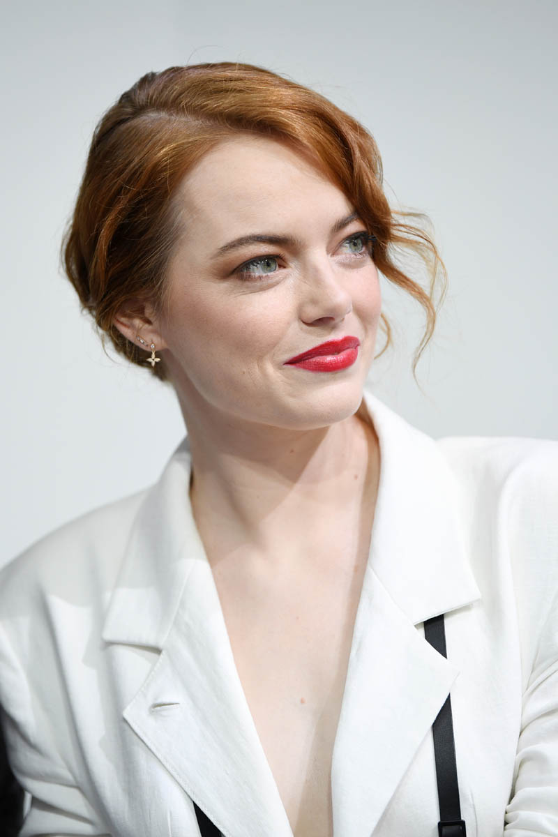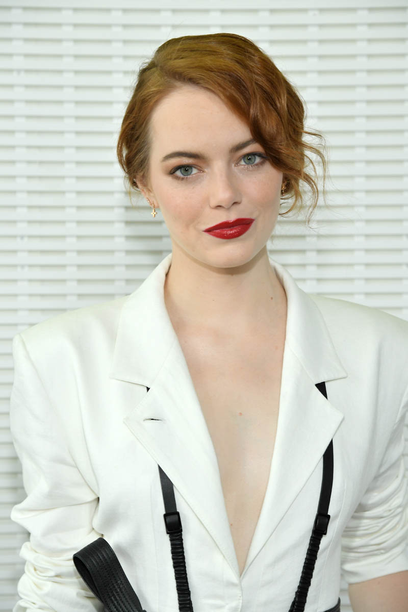 Emma Stone was in Paris yesterday at Fondation Louis Vuitton for the presentation of the LVMH Prize to an emerging designer, clearly a major priority for conglomerate as even Karl Lagerfeld, presumably repping Fendi, was there too. This photo of Emma, Nicolas Ghesquiere, and Karl kills me. Look at the expression on her face. What f-cked up offensive sh-t did Karl just say when this picture was taken?