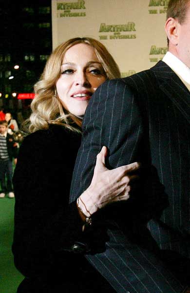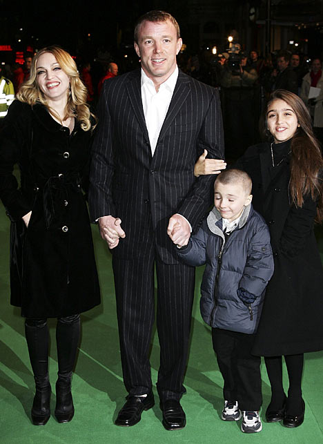 Amid widespread speculation that her marriage is in trouble, Madonna trotted out the husband and the children last night in London for the premiere of Arthur and the Invisibles. But first… Rocco kills me – do you love him or what? I love him. And remember, 15 years from now, wait for the MaddRoc…Maddox Pitt and Rocco Ritchie, best friends and band mates – the future of gossip. For now of course it’s Rocco’s mother, looking wonderfully preserved per usual, if not a little desperate. Hey – I understand the need to show us all that things with Guy are nothing short of fantastic but is this kind of clinginess becoming of Madonna? If you weren’t entirely convinced of the rumours before, are you MORE convinced of them now? Already emasculated in the press for living in the shadow of an outspoken superstar, Guy Ritchie now has to endure the embarrassment of the Pity Clutch – performed for the cameras in a futile attempt to convey that it’s really HE who holds the power which, as we know, is a suggestion so preposterous, you have to wonder how bad it really is for her to be trying so desperately hard. Finally... can you believe Lola is 10? She’s gorgeous, non? And not that you can tell from just one photo, an absurd observation really, but something about the way she’s carrying herself, the way Madonna has her in age appropriate clothing with flat sensible shoes and a warm coat – getting the strong sense this girl has been raised well and I’m tell you… Lourdes Maria Ciccone Leon will NOT be the next Britney or Lindsay or Paris or Dakota. Trust. Source