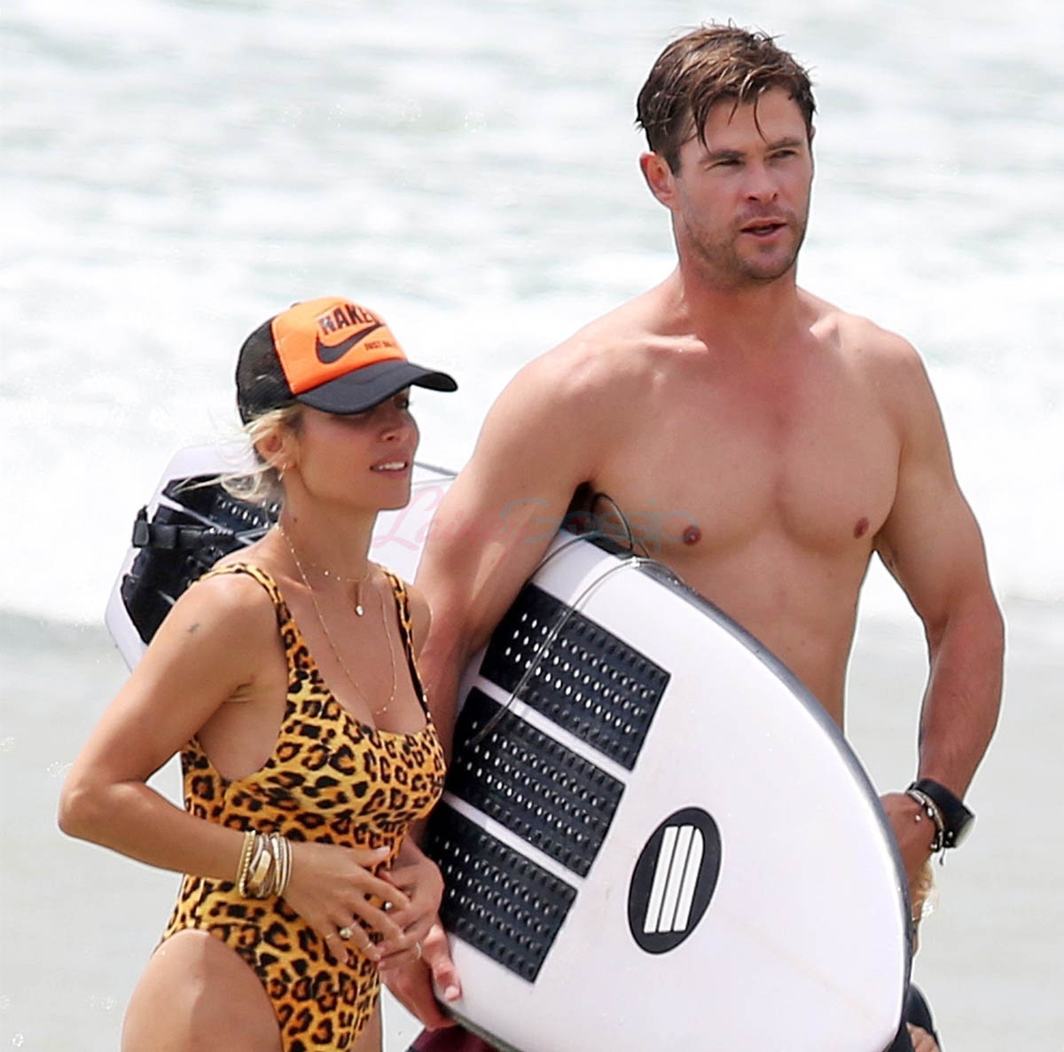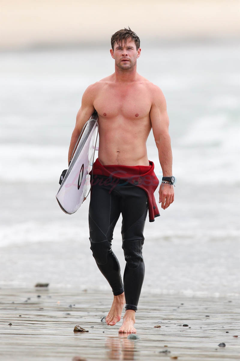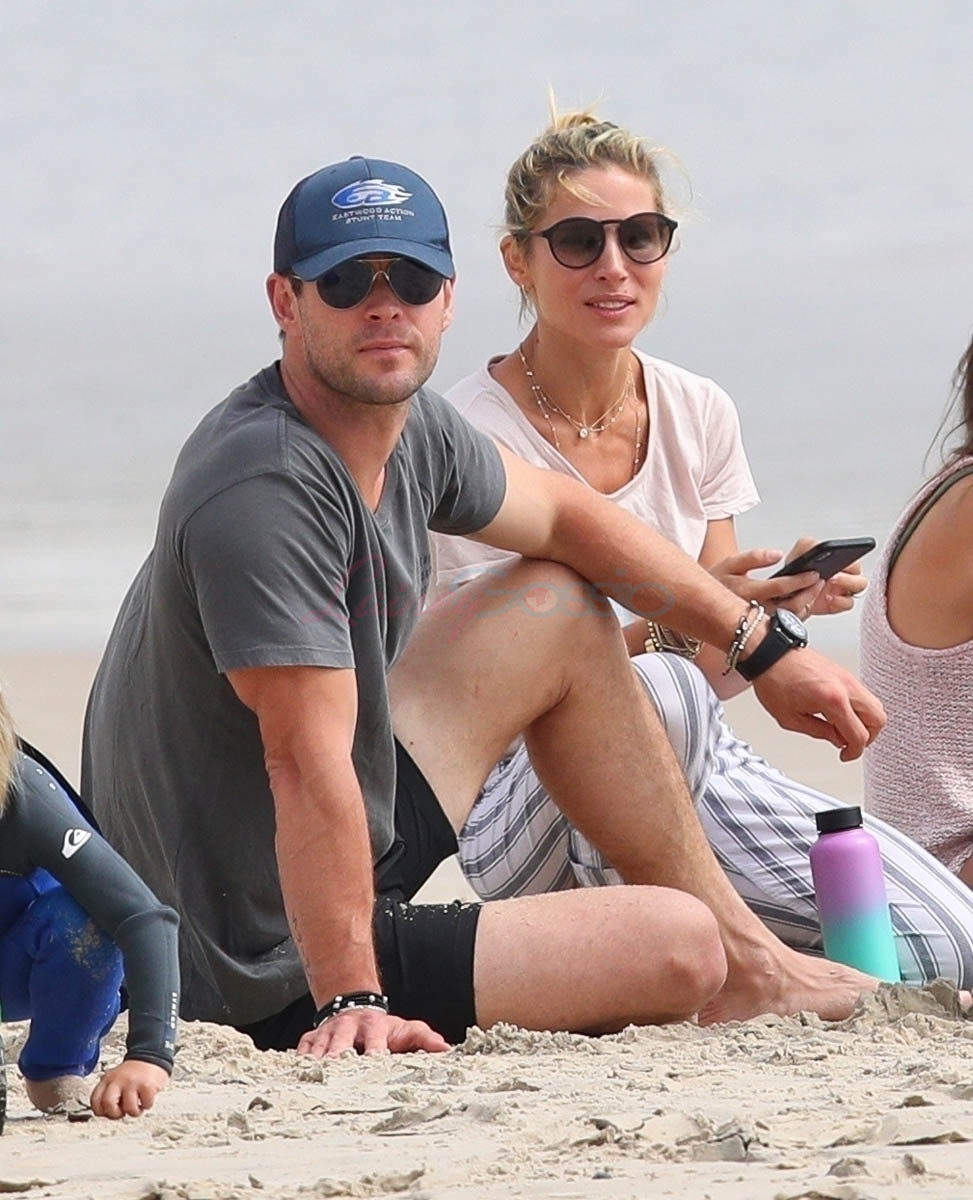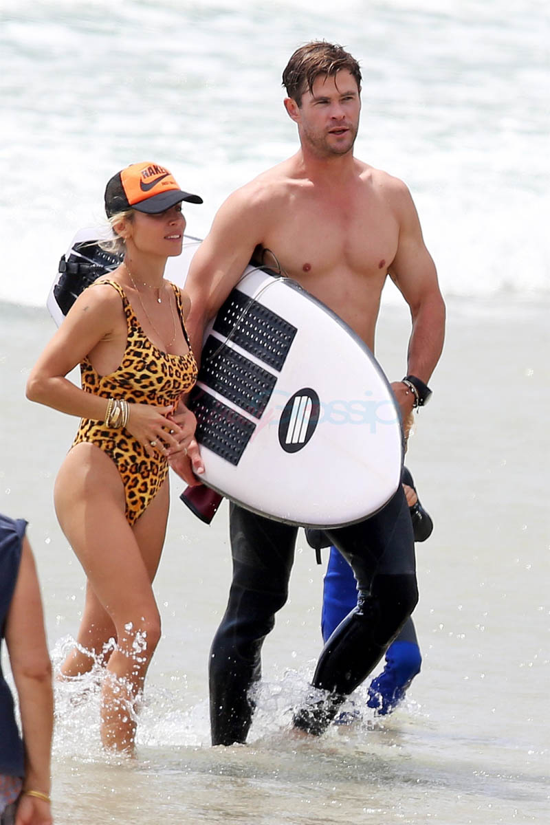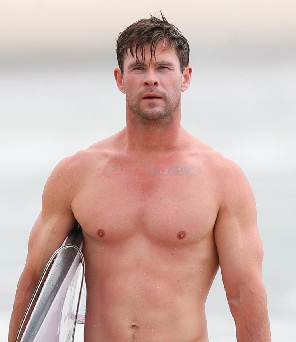 That’s three Chrises namechecked – the fourth, Hemsworth, is at home in Australia with Elsa Pataky, seen here embracing on the beach in Byron Bay. They’re approaching their eighth wedding anniversary in December. He just turned 35. I had to check that. And it surprised me. I thought he was at least 40. Anyway, as you can see, Chris and Elsa are fine. Or maybe you don’t give a sh-t because you’re looking at these shots of him all wet with his shirt off. Why doesn’t he do it for me?!