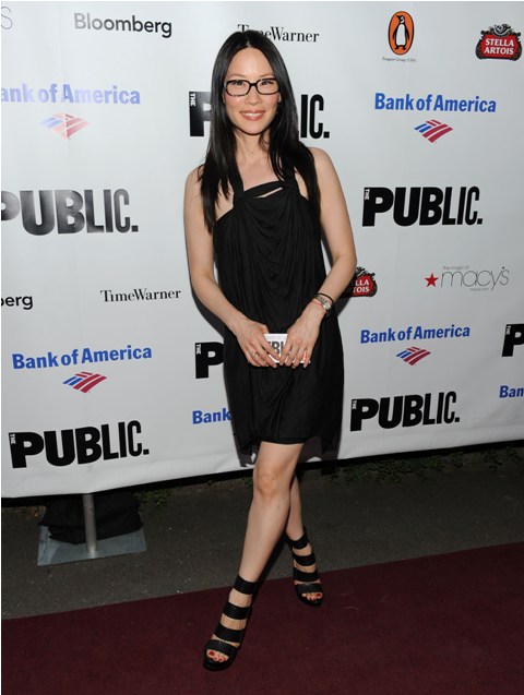 If only I could wear my glasses as beautifully as Lucy Liu wears hers. I like the way it magnifies her wonk. I love the way she didn’t give a sh-t about magnifying her wonk on a red carpet, here at The Public Theatre Annual Gala last night in New York, ageless in that signature Asian way, as we really don’t show it until we hit 60, at which point we accelerate to 80 in the space of 2 months.