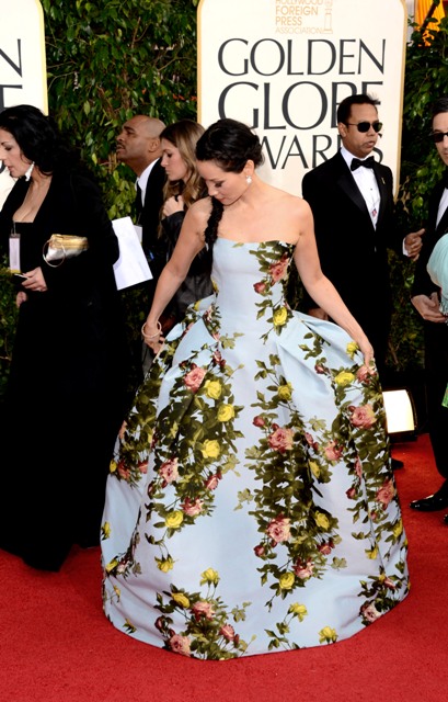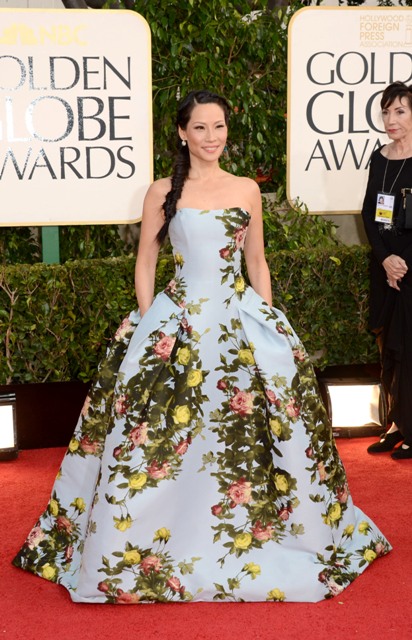 Come on. You knew it. Duana rolled her eyes as soon as she saw the braid. And the print. For all the slinky mermaids and the red taffetas and the strapless sparkles and the goddamn lace, Lucy Liu’s Carolina Herrera was an exception. No one else was working this shape with this much structure. And the floral pattern gave it a sense of... Marie Antoinette, right? An Asian Marie Antoinette. She stepped right out of Sofia Coppola’s movie. With pockets!