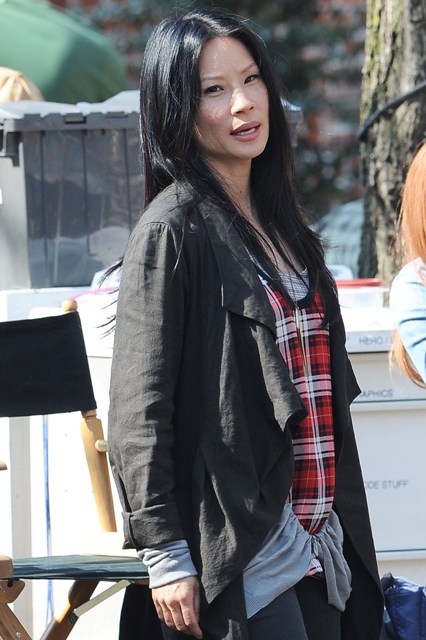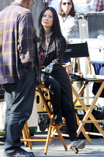 This is Lucy Liu on the New York set of Elementary yesterday, a new Sherlock Holmes pilot for CBS. Liu is “Joan Watson”, the sober companion to Jonny Lee Miller’s Holmes who’s just come out of rehab. Needless to say, the purists are punching themselves in the face out of frustration.