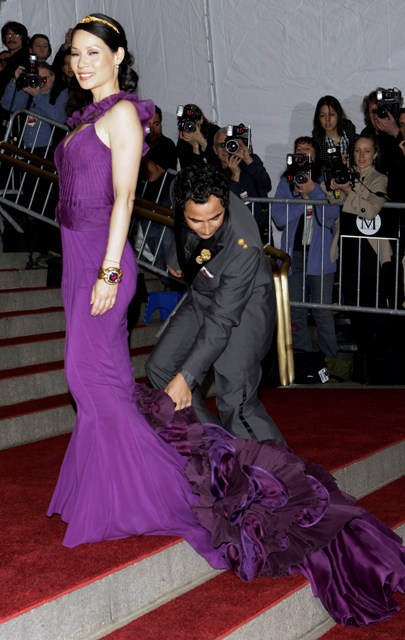 Lucy Liu came with Zac Posen, as many celebrities arrived on the arm of the designers who dressed them. You can see him adjusting her train here - the most spectacular train, like, ever. Again, the images don’t capture it adequately. I mean the detail of every ruffle, each piece was like an individual handcrafted flower…so magnificent, like art on a body, and the way it clung to every inch of her - tonight she was the Asian of the Night. And we won’t bother with that dithering bore Zhang Ziyi.
