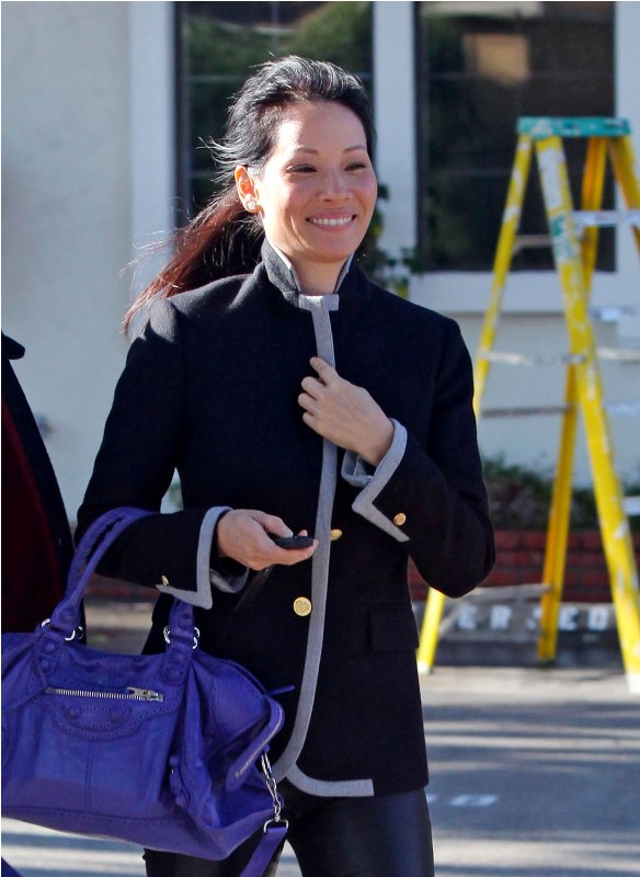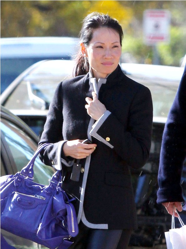 Carpets & Candids: Lucy Liu’s blazer with grey trim