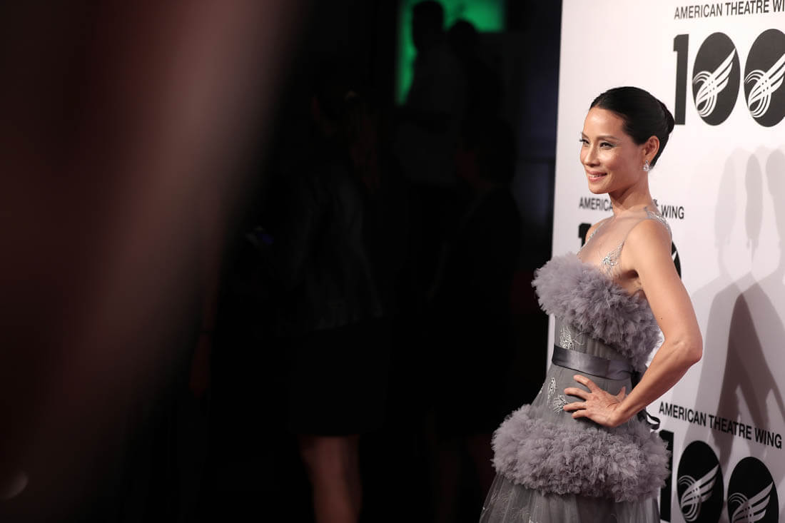 Carpets & Candids: Lucy Liu’s tiered furry dress
