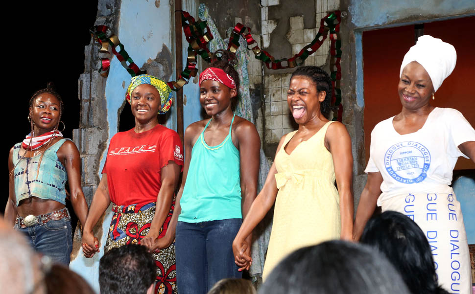 After a successful run off-Broadway at the Public Theatre, Danai Gurira’s Eclipsed began previews on Broadway at the Golden Theatre last night. It’s the first time in Broadway history that the cast, director, and writer are all women. Eclipsed is the third play that Danai has written in the last 10 years, at least the ones that have been produced. She’s probably written several more. And it’s not like she just writes, either. In between all that she works on a little show called The Walking Dead. Eclipsed is the story of survival about a community of women during the Liberian Civil War. Click here for more on the production. Lupita Nyong’o’s face is on the marquee.