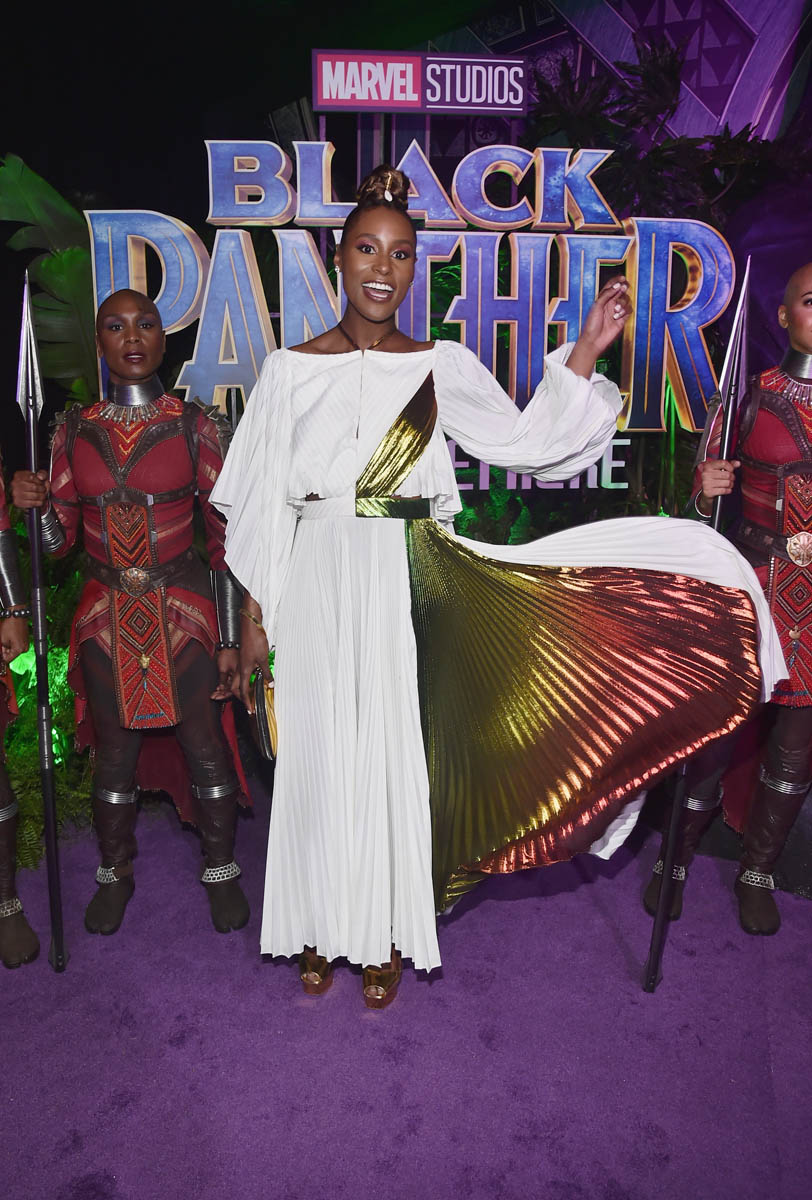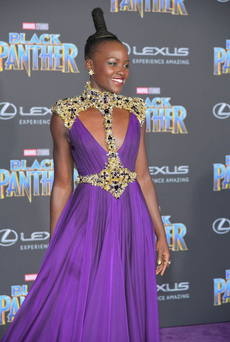 The official dress code of the Black Panther premiere was royal. The carpet was purple. Attendees were told to dress in their majestic best and my GOD, did they deliver. I don’t mean to be extra here but in a year when the people most of the world recognize as Royals (yes, the British ones) will welcome their first black Princess (or Duchess, whatever) and we’ve already seen her face her share of racist bullsh-t, a red carpet like this is radical. It’s exhilarating. Royalty is not just one thing. THIS is royalty.