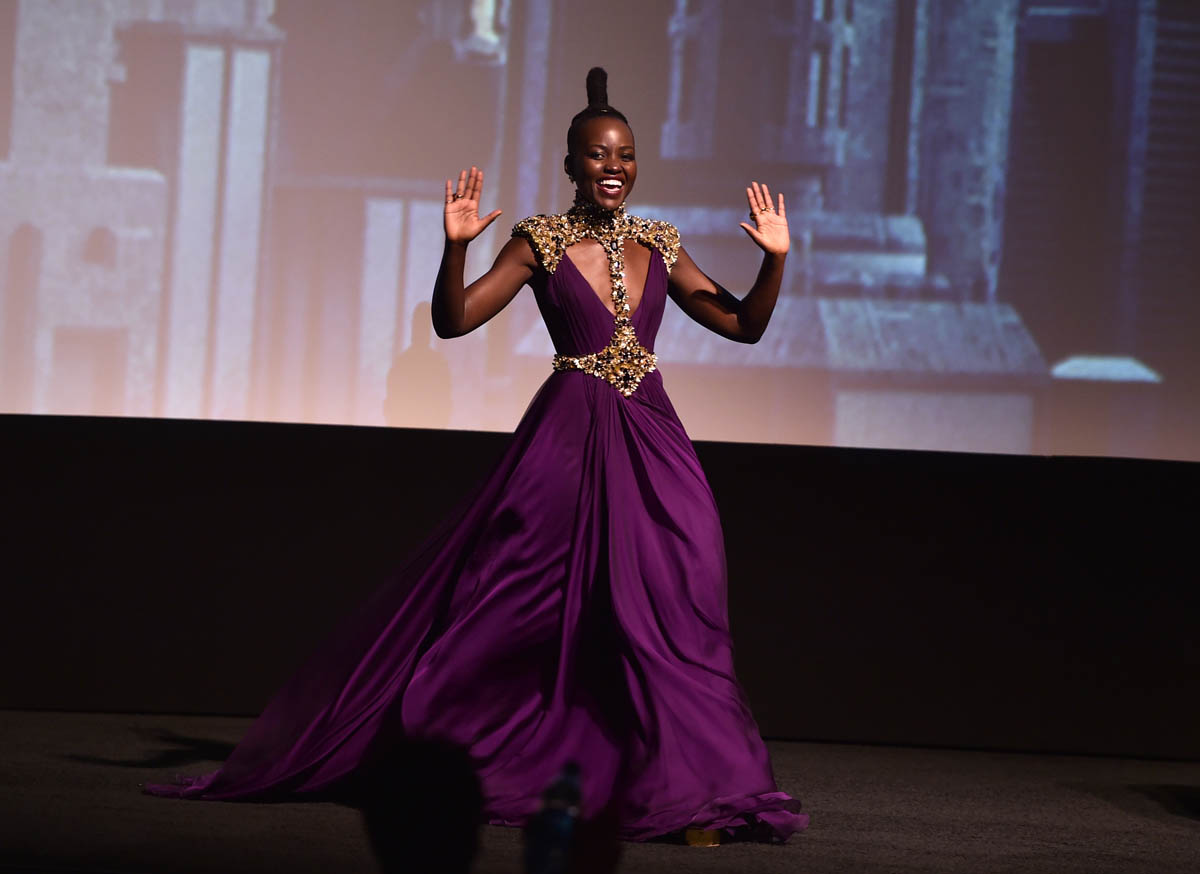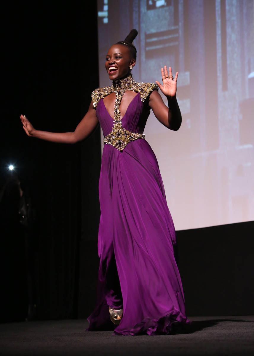 Lupita Nyong'o is the most regal human being I can think of. Last night, she wore custom Versace. Her exceptional look was inspired by her Black Panther character, Nakia. Lupita’s stylist Micaela Erlanger told The Hollywood Reporter that she has made a point on this press tour to dress Lupita in bold colours.