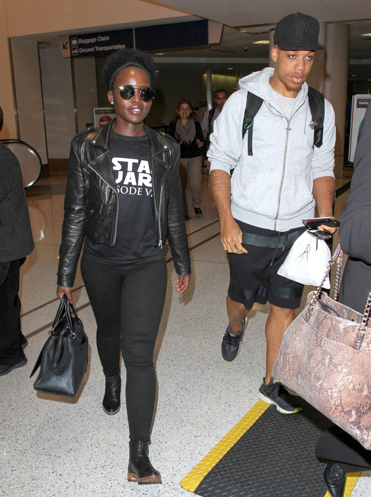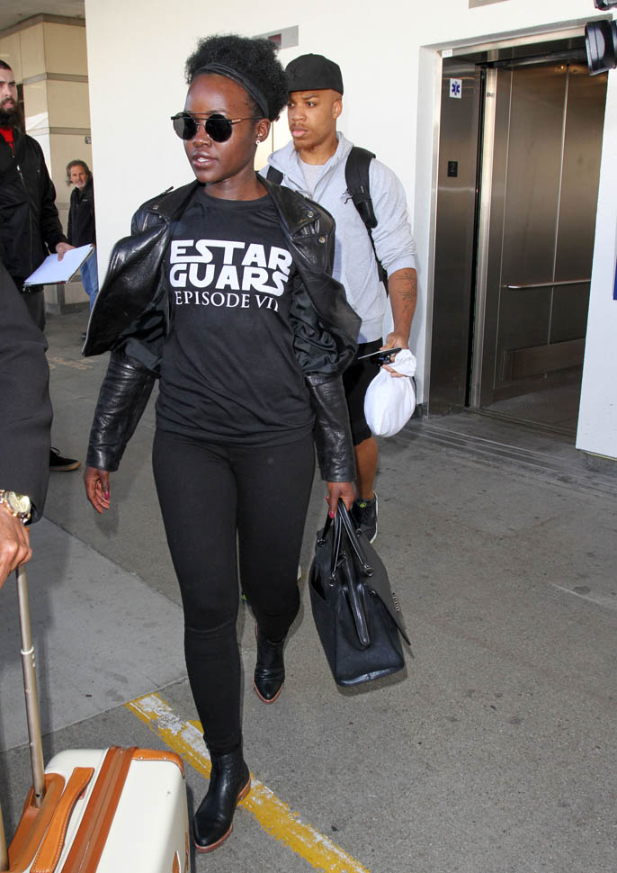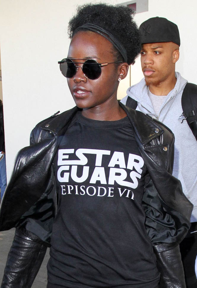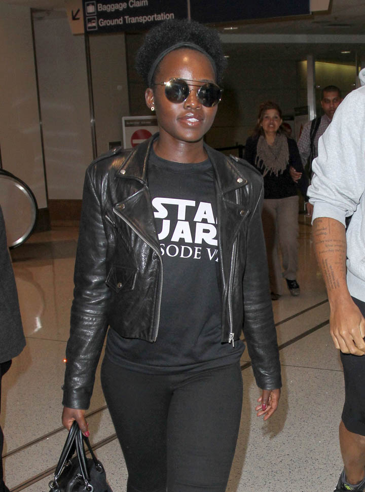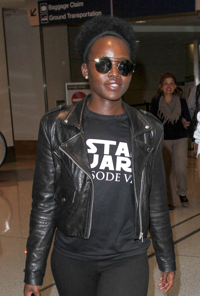 Anyway, the point is there is a LOT of emotion going into tonight and this week. Last Friday we had Anthony Daniels on The Social. He’s C-3PO. A couple of people in the audience started crying. Even Kevin O’Leary turned into a fangirl and came out before his own segment to ask for a photo of them together. Anthony, by the way, is AWESOME. First of all, it’s ANT-ONY. Like the way Gwyneth pronounced it when she presented to Anthony Hopkins at the Golden Globes so many years ago and you all called her pretentious. That’s his name, OK? Second, he’s hilarious and started redecorating the minute he arrived on set, asking our floor director to remove the centrepiece from the coffee table so he could put C-3PO on there instead. He walks around with one constantly! Anthony will be there tonight. As will Lupita Nyong’o who arrived in LA yesterday wearing the t-shirt like anyone needs to be reminded.