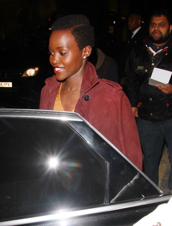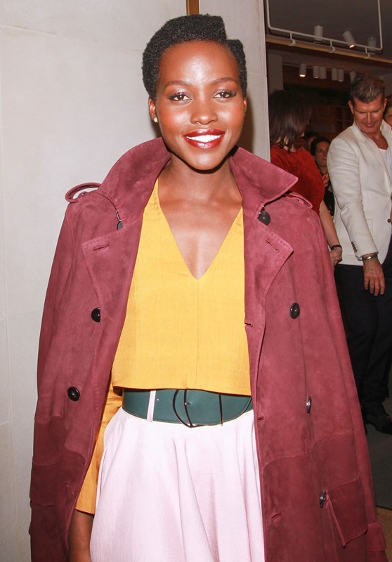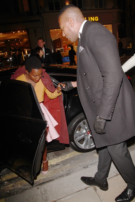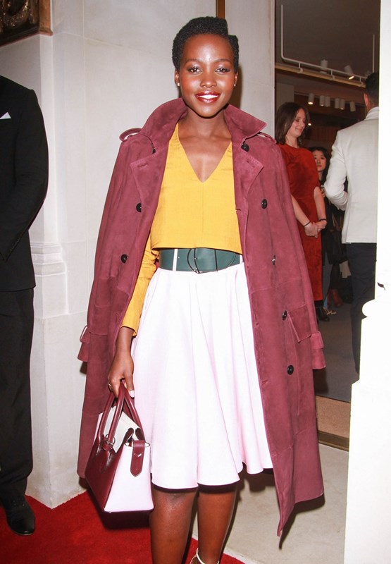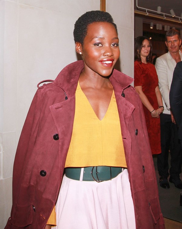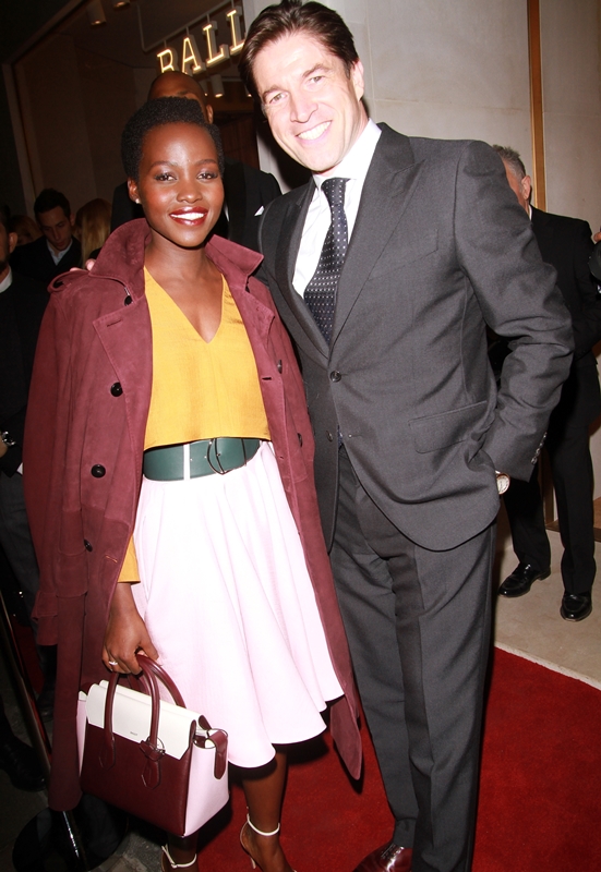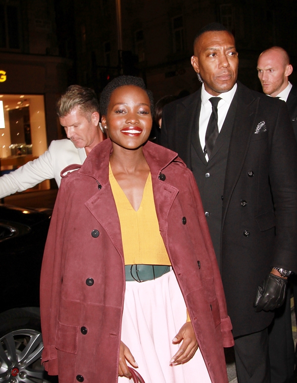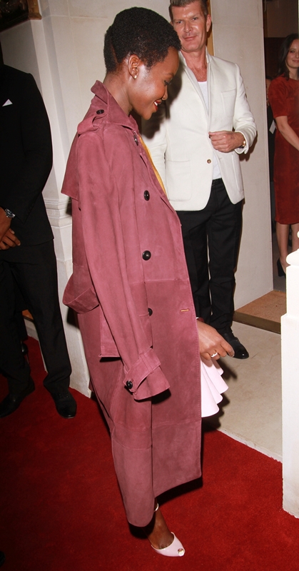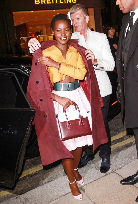 Lupita was in London last night at the opening of the Bally’s flagship. Of course, the entire look was on point. The coat over the shoulders. But then when she took it off, the green belt, and, always…