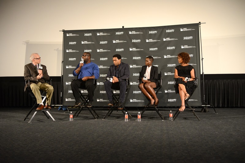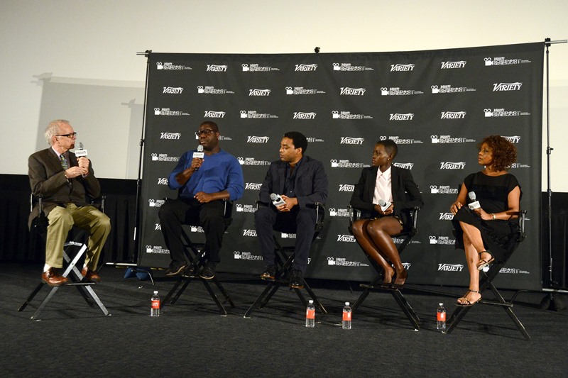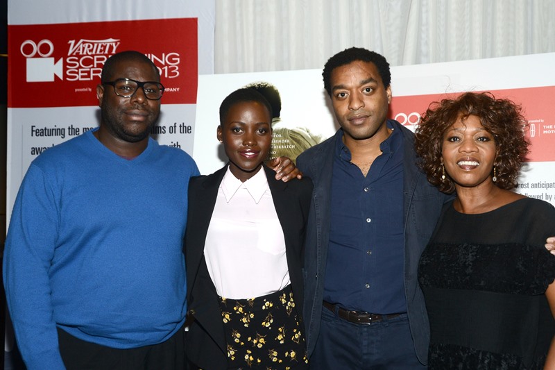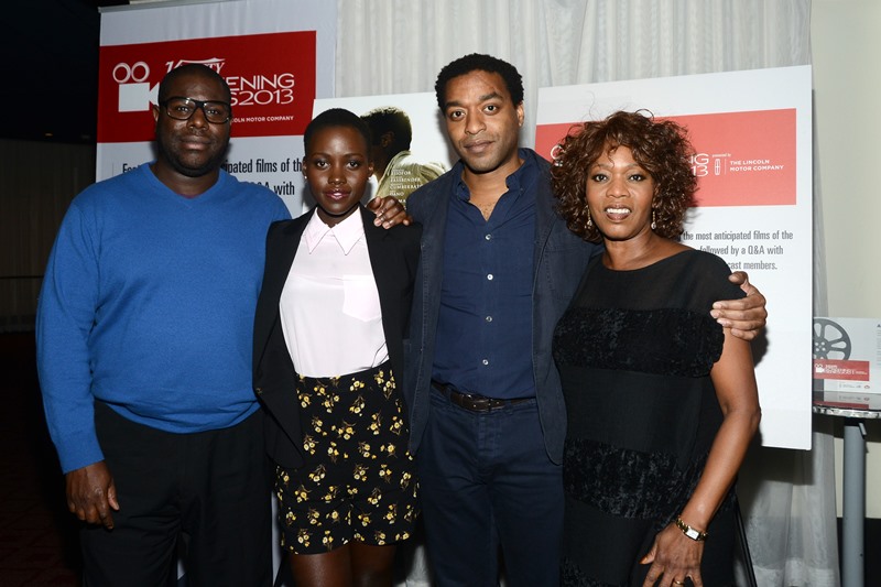 12 Years A Slave is opening this weekend and in advance of the (limited) release, Fox Searchlight is screening it at a series of events, as often as possible with sponsorship, so to build momentum and word of mouth and generate support for award season. Here are director Steve McQueen, Chiwetel Ejiofor, Alfre Woodard, and Lupita Nyong’o in LA last night where they also participated in a Q&A. Nyong’o is the breakout star of this film. Word is she’s a lock for a Best Supporting Actress nomination. And then I went to PEOPLE.com and saw this as the headline about her: