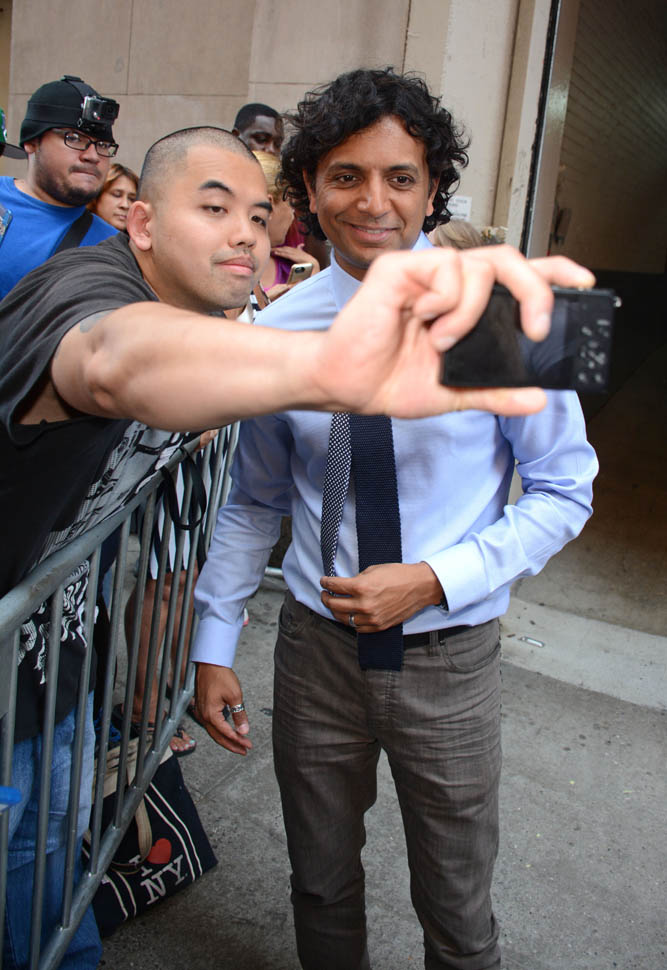 Attached -Shyamalan promoting The Visit in New York last month.