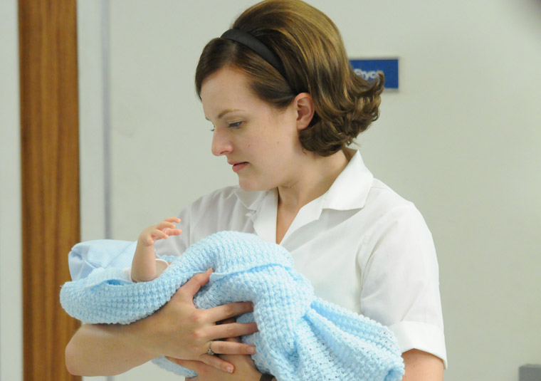 Finally there's Joan, and this was the one that left me the most disconcerted. Utterly out of her element with baby Kevin and her mother (!) in her apartment, it didn't take long at all for her insecurities to get the best of her. While this proves several self-evident truths, like that your mother can undermine you like nobody else even as she's helping you out, and that being alone in a house will make anyone crazy (note to self: go outside), I didn't like where this might go, if Joan's relatively recent absence (how old was that baby supposed to be - 10 weeks?) had made her this uncomfortable and insecure. I've always liked the relationship she and Lane have; despite the fact that he really is a lady-hound, he's never really seen "Mrs. Harris" that way, which makes me like him a little bit. Am I being premature in suspecting that he's the one who will notice baby Kevin's eventual resemblance to his erstwhile papa?