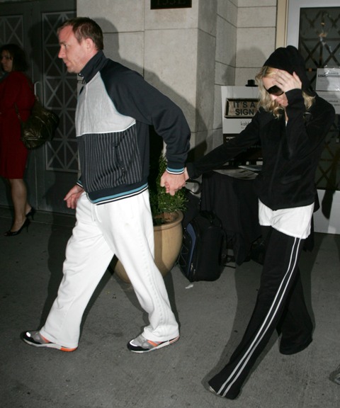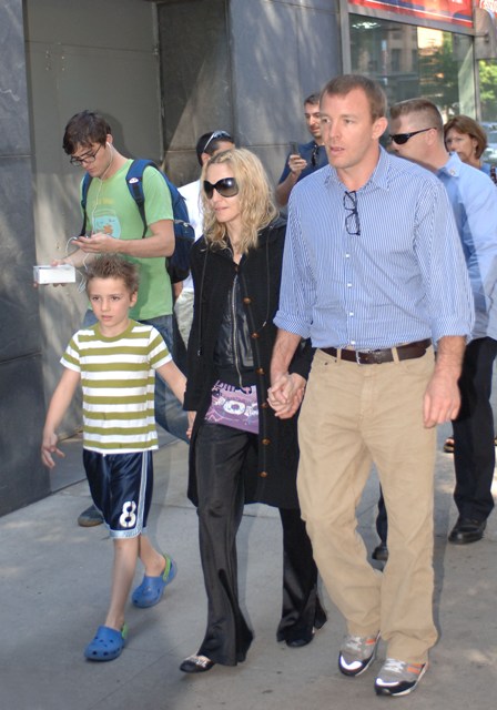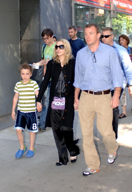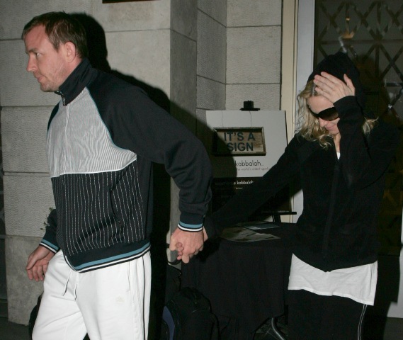 Check out the Family Madge at Kabbalah service the other night – Madonna being led out by Guy Ritchie and again yesterday taking their kids out to a movie, both continuing to attempt to convince the world that all is right between them