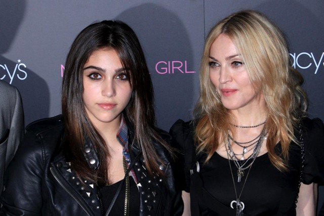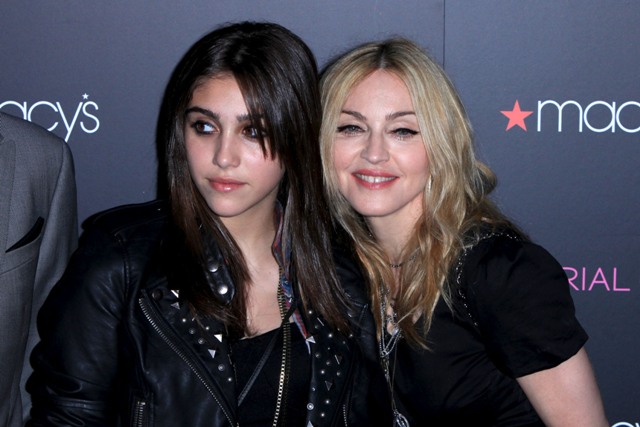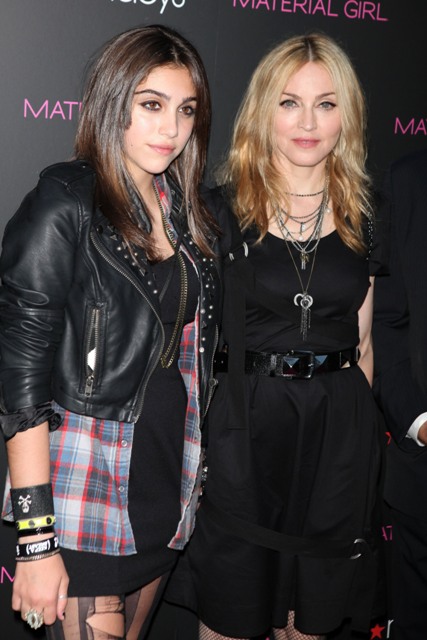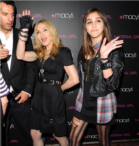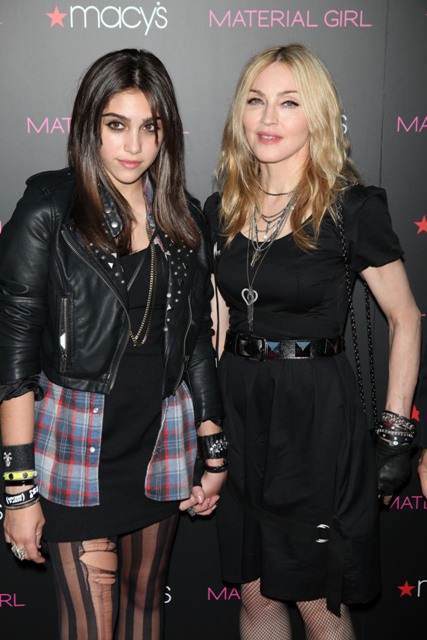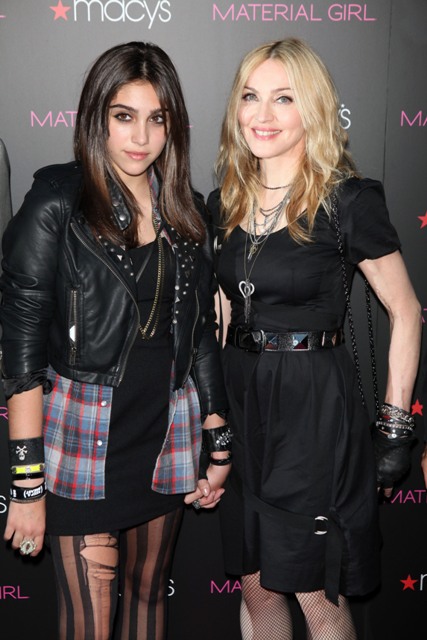 Madonna and Lourdes walked the pink carpet together at the Material Girl launch at Macy’s last night in New York and actually stopped for joint interviews on the press line and while Lourdes has certainly been heard before, this is really the first time she’s been broadcast so widely. It’s pretty amazing.