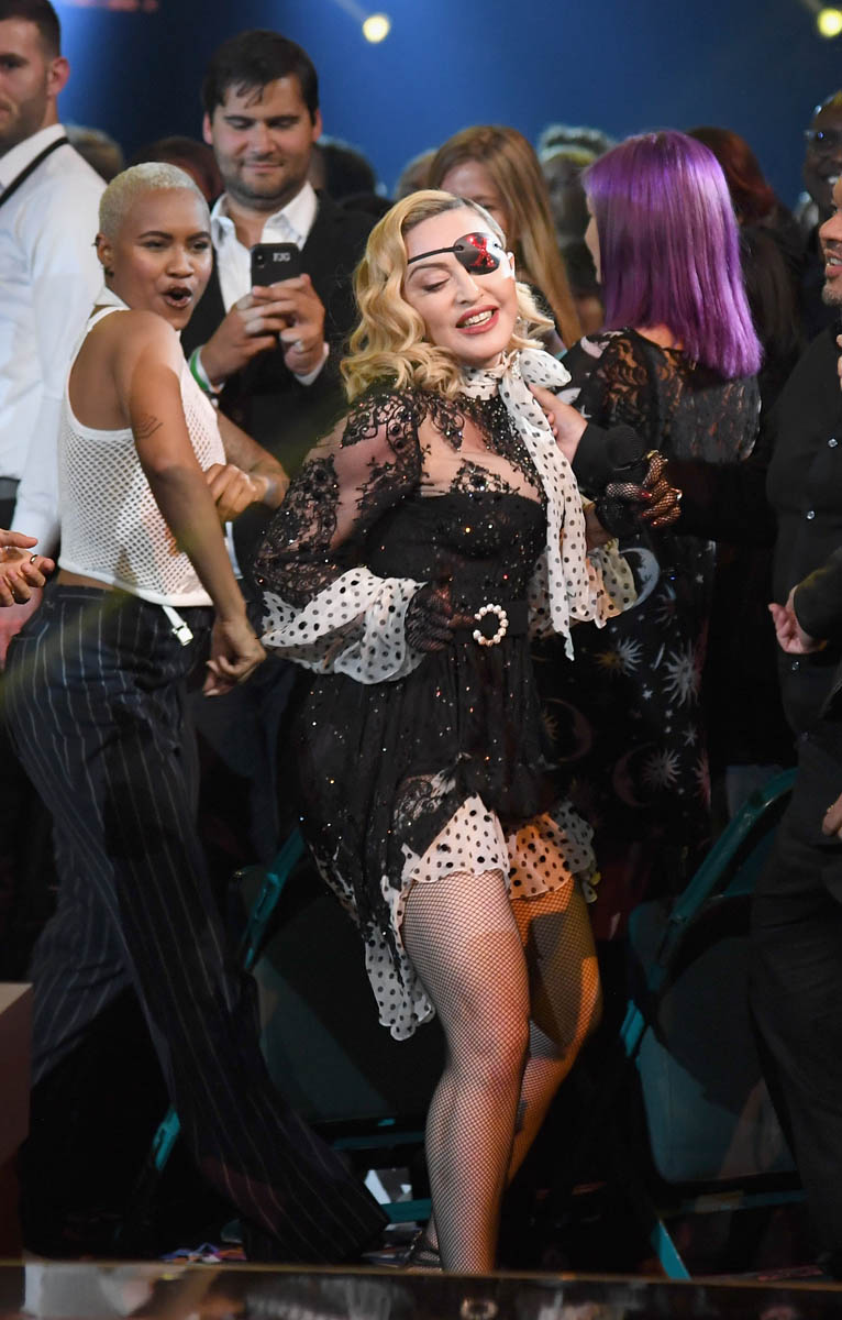 Earlier this week, it was reported that Madonna was spending $5 million of her own money on her Billboard Awards performance. As we saw last night, the money was for the tech – several Madonna holograms appeared alongside the “real” Madonna before bursting into digital confetti and…well…that’s Madonna, she’s always trying to try something new. There may have been some meta messaging here too: that she HAS reinvented herself so many times, and that each one of those reinventions is a part of her, all of them existing independently and together. I appreciate the effort but that doesn’t mean it was good. It may be because the technology isn’t there yet?