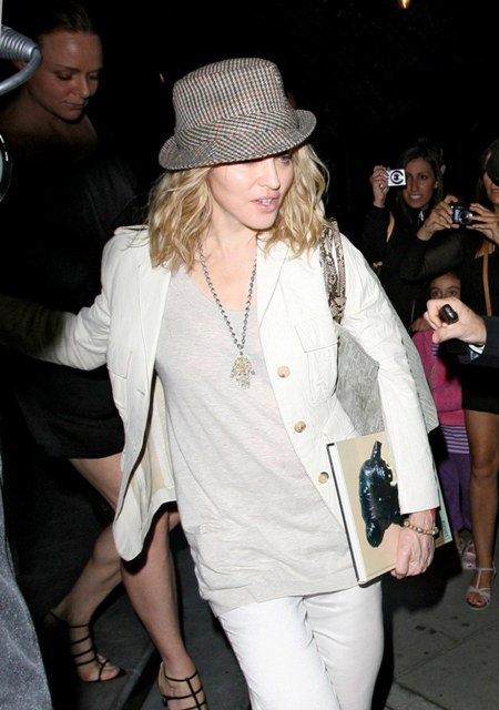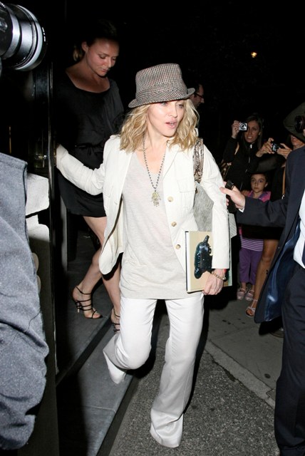 Gwyneth is still shooting Iron Man 2 so she missed on dinner with her girls last night in London. Madonna and Stella McCartney hooked up at Locanda Locatelli to catch up. Up until a couple of a weeks ago, both women had 3 children. Now Madge has taken the lead with Mercy, although Stella appears to be quite fertile. And is younger. She could tie it by next year. This must be what they talk about.