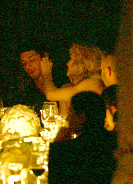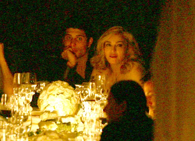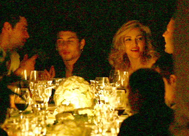 Madonna turned 51 yesterday, celebrated at a dinner party in Portofino seated beside her petting toy Jesus Luz. In the soft candlelight, and having chilled out a little on the face work, Madge easily, from this blurry pap distance, looks 10 years younger.