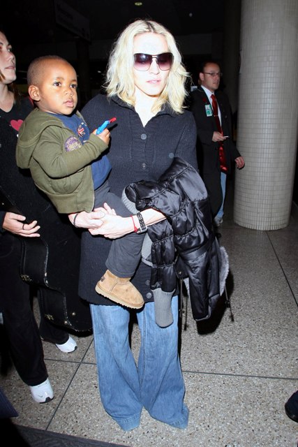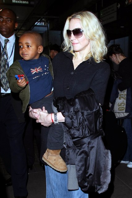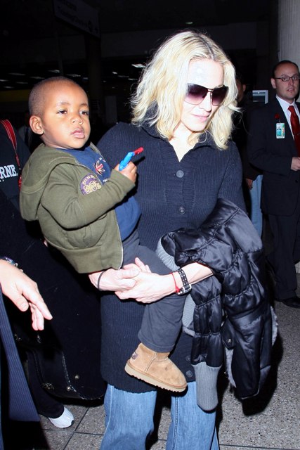 A beautiful Madonna and the kids, including little David Banda, arrived in LA yesterday, presumably to reunite with Guy Ritchie who has been noticeably absent over the last 2 weeks while Madge made headlines in New York at the Raising Malawi benefit and in Berlin at the premiere of Filth & Wisdom.