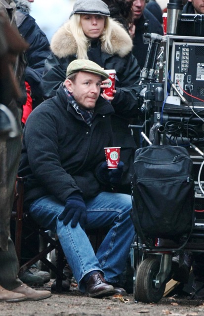 Here’s Guy on set and also leaving his pub The Punchbowl on the weekend all smiles.
