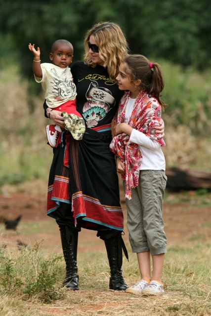 Madonna and family have much to celebrate. She signed a $100 million ten year deal with Live Nation meaning she’ll still be poppin’ and rockin’ until she’s almost sixty, she worked with Pip and Timbaland on a new album set to drop this Spring, and now comes news that her much contested adoption of baby David Banda from Malawi will likely be confirmed ahead of time after an excellent review from a social worker assigned to assess how David is adjusting to his new family – beautifully.