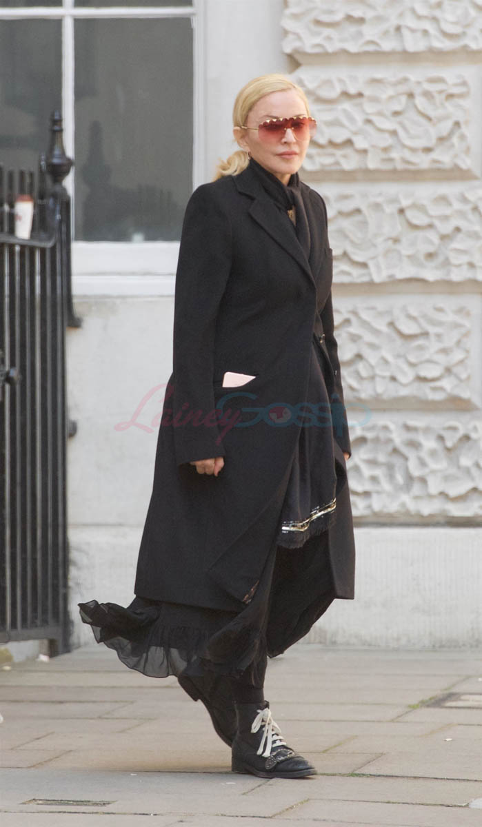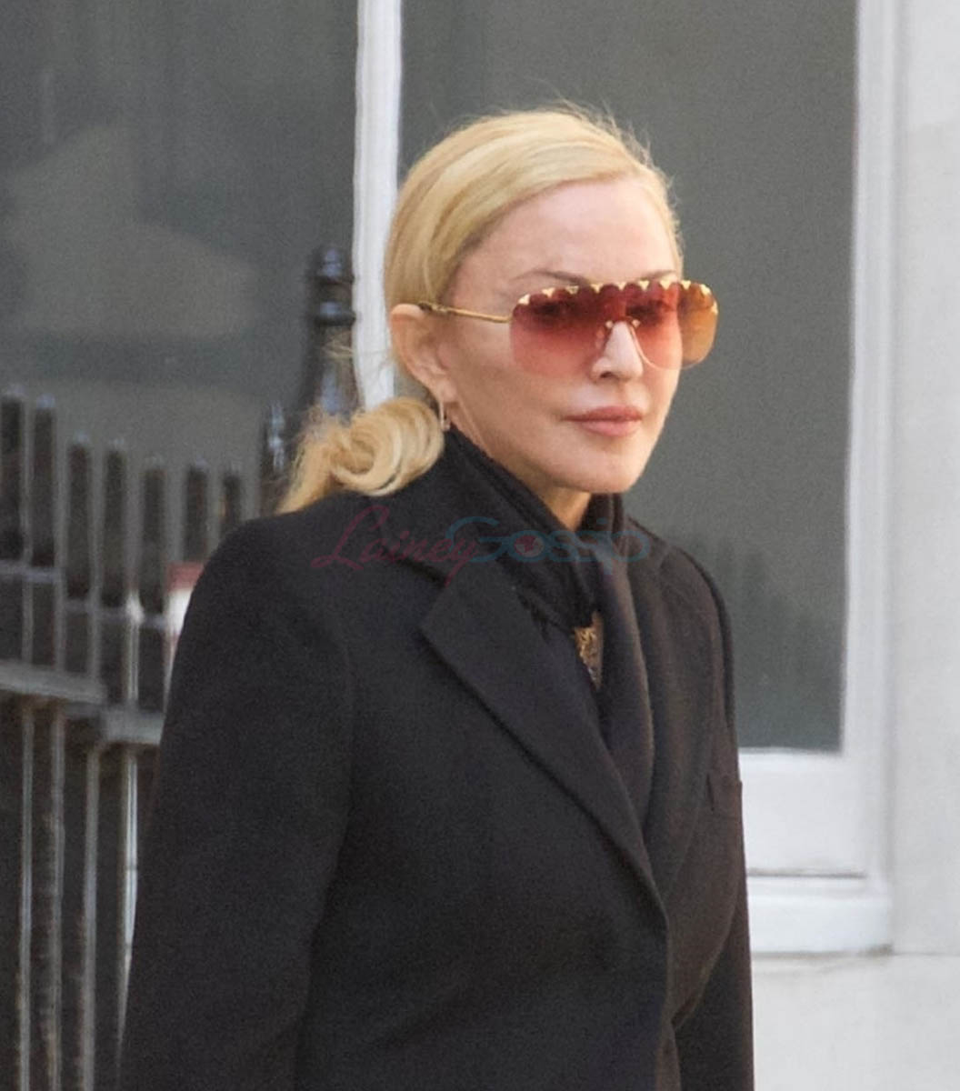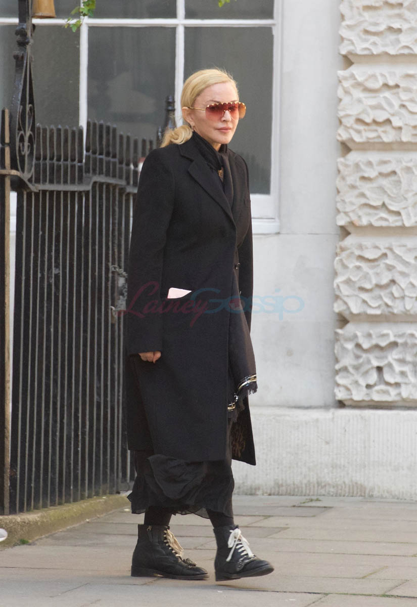 Attached - Madonna leaving a Kaballah service the other day in London.