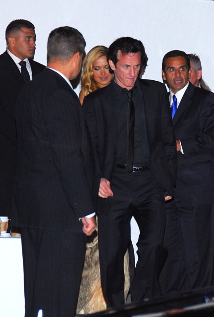 Sean Penn and Madonna both at the CAA bash last night. A freshly shaved, freshly separated Sean looked kinda hot. Still waiting for word about whether or not they found themselves in an awkward corner but if there’s one man Madonna probably will never get over completely, it is Sean Penn.