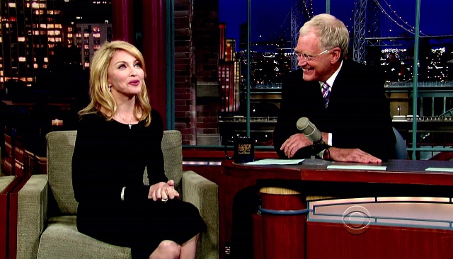 The purpose of Madonna’s visit to Letterman was to promote her new greatest hits album which dropped this week. Did you? I did. It’s great to work out to. I wanted to take her running today but, surprise, it’s raining in Vancouver.