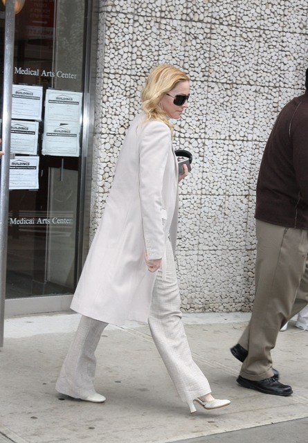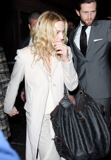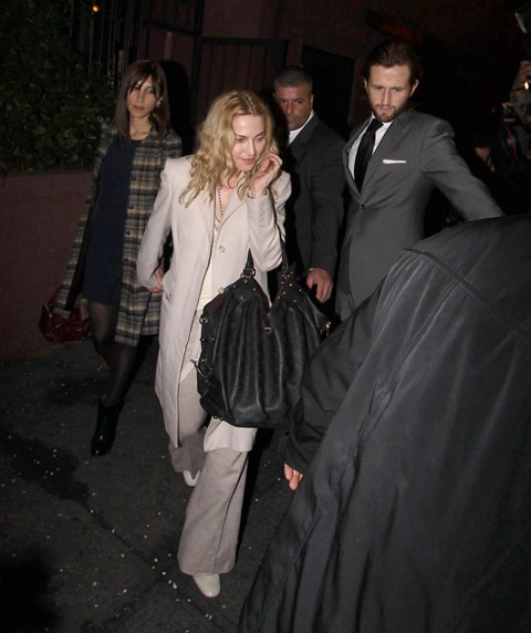 Madonna in New York yesterday – first visiting a medical building where Page Six reports she was seeing a spine specialist. Amazing she can wear heels with a sore back. I can’t wear heels after a workout, let alone falling off a horse.