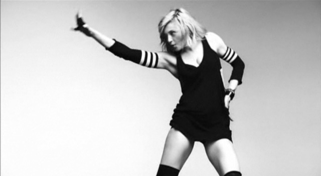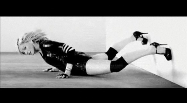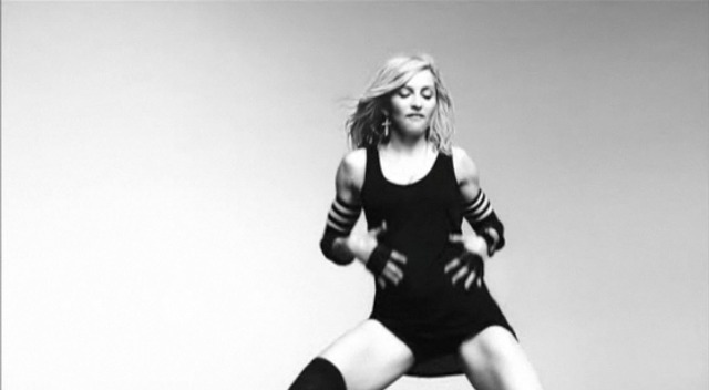 I love those black bands on her arm. And the t-shirt with the sport stripes underneath. All the costumes, actually. Sometimes it looks like she can’t keep up with the moves and they cut away too quickly, and yes, she’s done this sh-t so many times before, but there’s something about the tone of this particular video that I can’t stop watching...