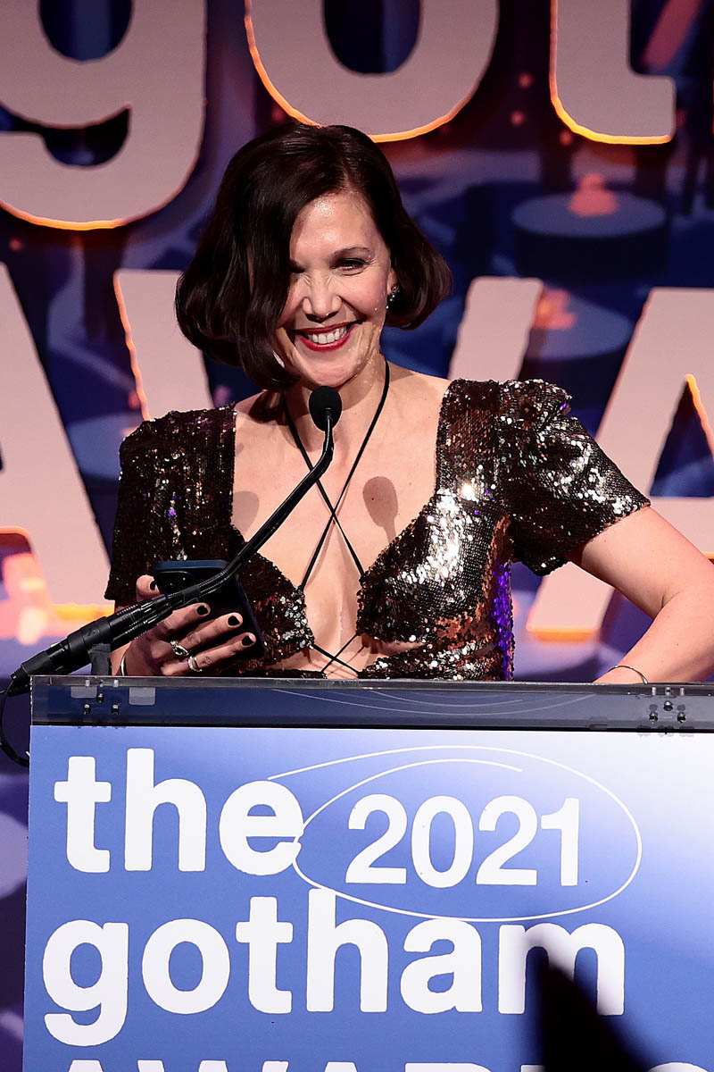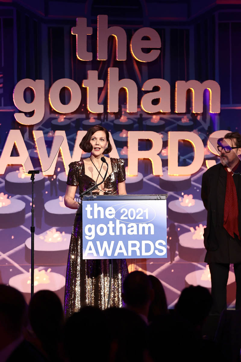 Maggie Gyllenhaal was the top winner at the Gotham Awards last night, winning three statues from different juries of her peers in her hometown New York crowd for her feature directorial debut, The Lost Daughter. For a New Yorker, and independent film champion like Maggie, the Gothams are definitely a warm room, and 19 years after winning the Breakthrough Award for her work in Secretary, now she is being recognized as a Director, Screenwriter, and Executive Producer.