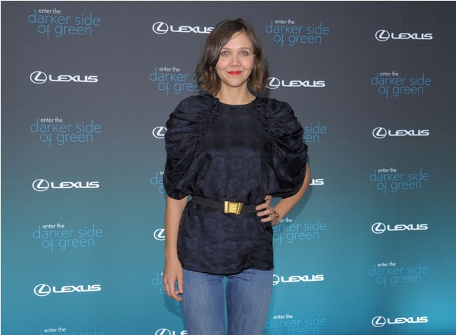 Maggie Gyllenhaal was at The Darker Side of Green Climate Change Debate in New York yesterday. Am all over this blouse. Love it. And she looks LONG. Because she is long. I had to crank my head up at her at the Spirit Awards a few weeks ago in LA on the carpet. Most celebrities are smaller than you think they are. Almost always. Maggie is tall. She looks extra tall here. That’s a lot of leg.