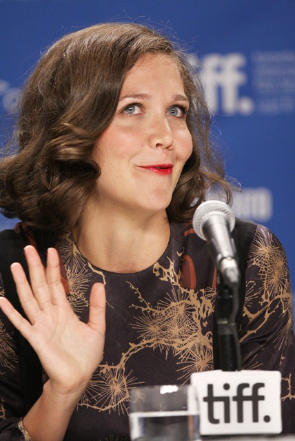 Maggie Gyllenhaal spent the day in Toronto promoting her new film. Photos are attached of her at the Magnum sponsored premiere of Hysteria. Hysteria is based on the true story of the invention of the vibrator. Like, we get in there. Which is why Maggie went there during the press conference and subsequent junket interviews before the gala. My colleague Traci Melchor interviewed her in our etalk lounge and they spent several minutes talking about “fingering” and such. For real. Like, that was part of her JOB yesterday. Traci’s too.