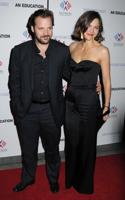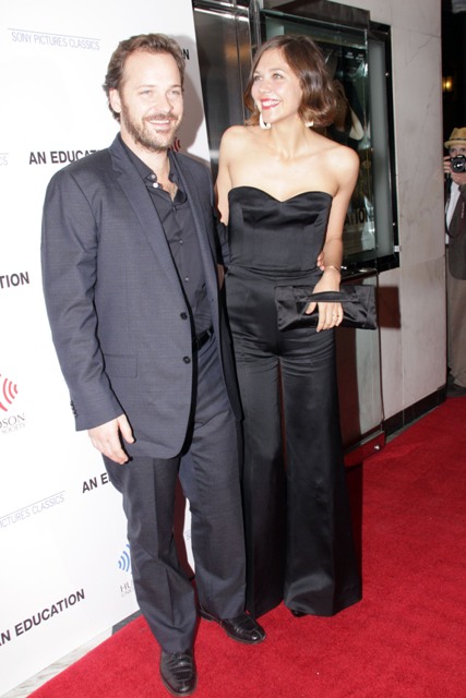 At the NY premiere of An Education last night, Maggie Gyllenhaal accompanied husband Peter Sarsgaard on the carpet in a black strapless jumpsuit. Not even my Maggie.