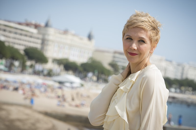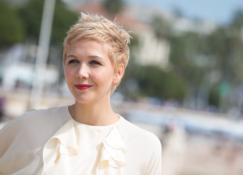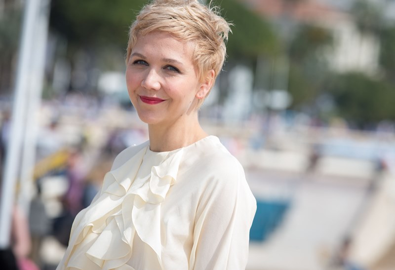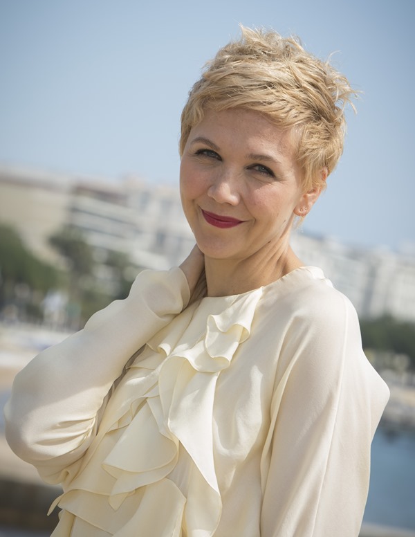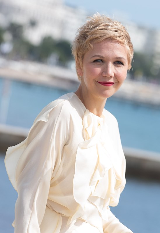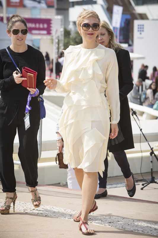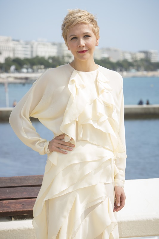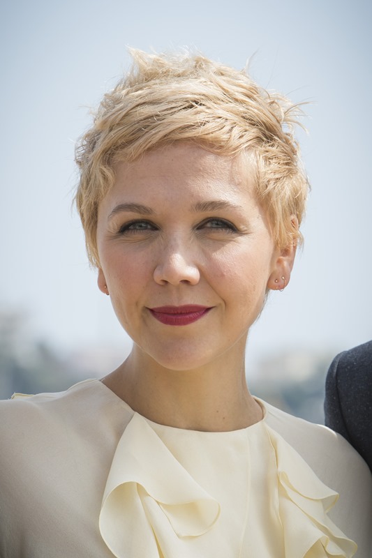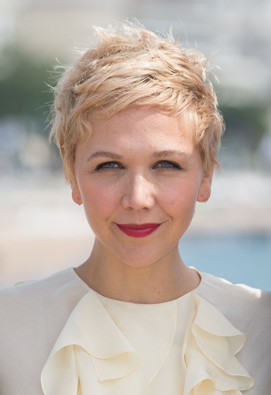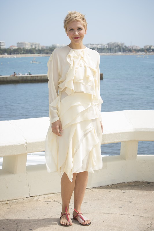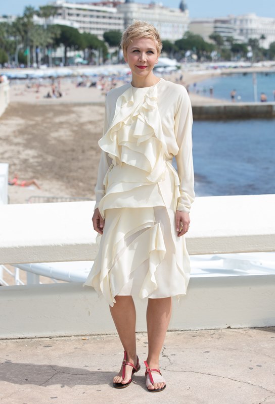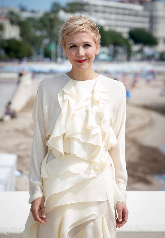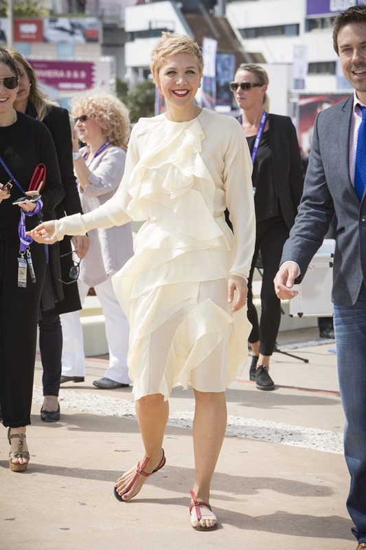 Maggie Gyllenhaal looks so great with short blonde hair. I'm so jealous. It's the hair I've always wanted. But...don't look down. I can't with this dress. The colour and the hideous ruffle.