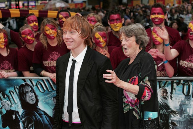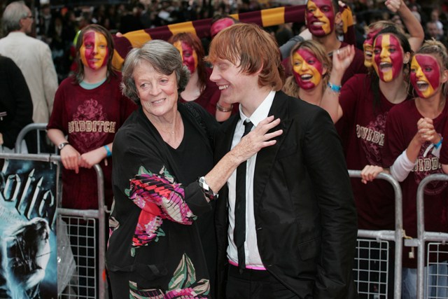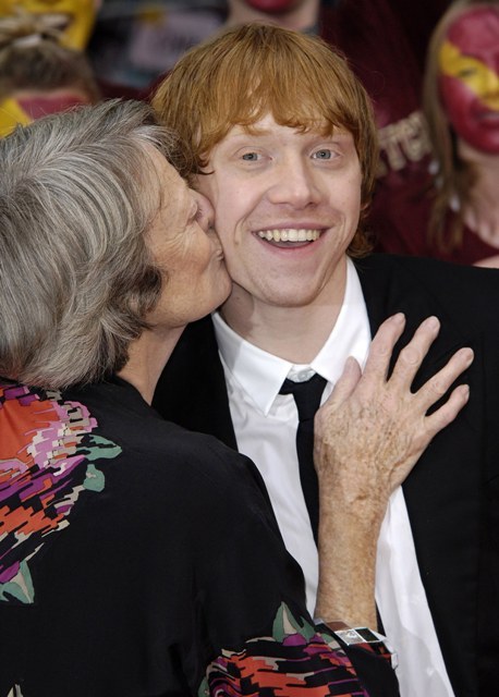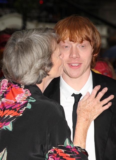 Cute moment on the carpet at Harry Potter last night as Rupert Grint was working the cameras, a playful Maggie Smith came from behind him and kissed him the cheek.