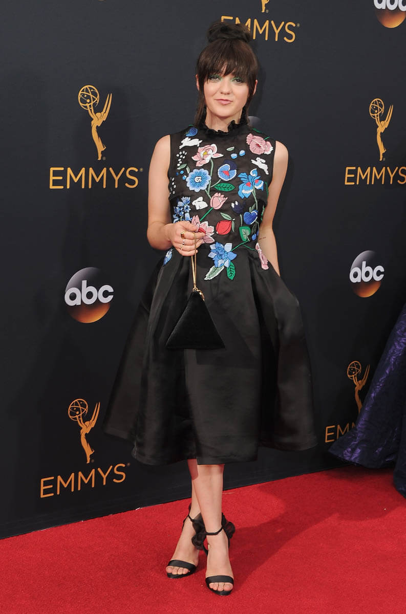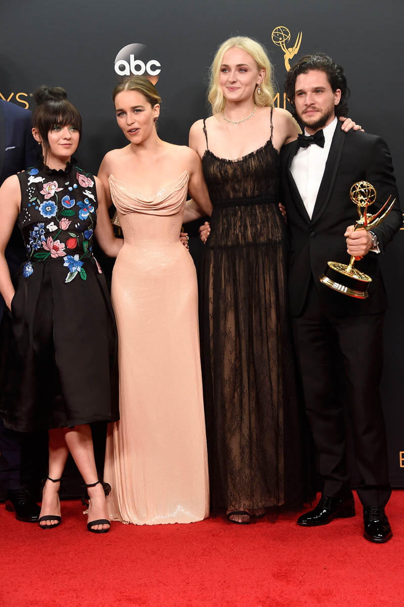It also means that when they’re together at events like these, they can shrug off some of the direness of everyone watching what they’re going to wear THIS time. Sophie Turner’s goth princess is very pretty, if not otherwise a standout, and Maisie Williams’ pop-art party dress is not for everyone but I feel pretty sure that she’s being true to herself—see also the green eyeshadow.