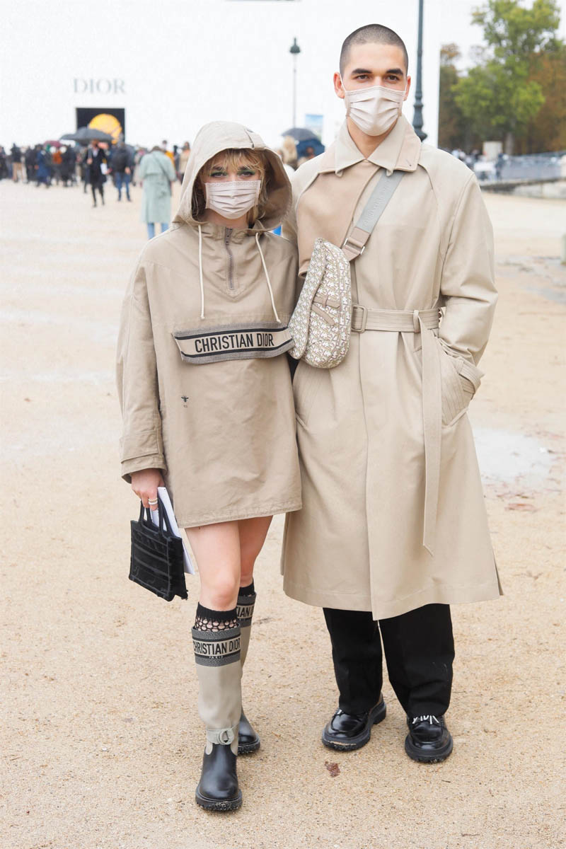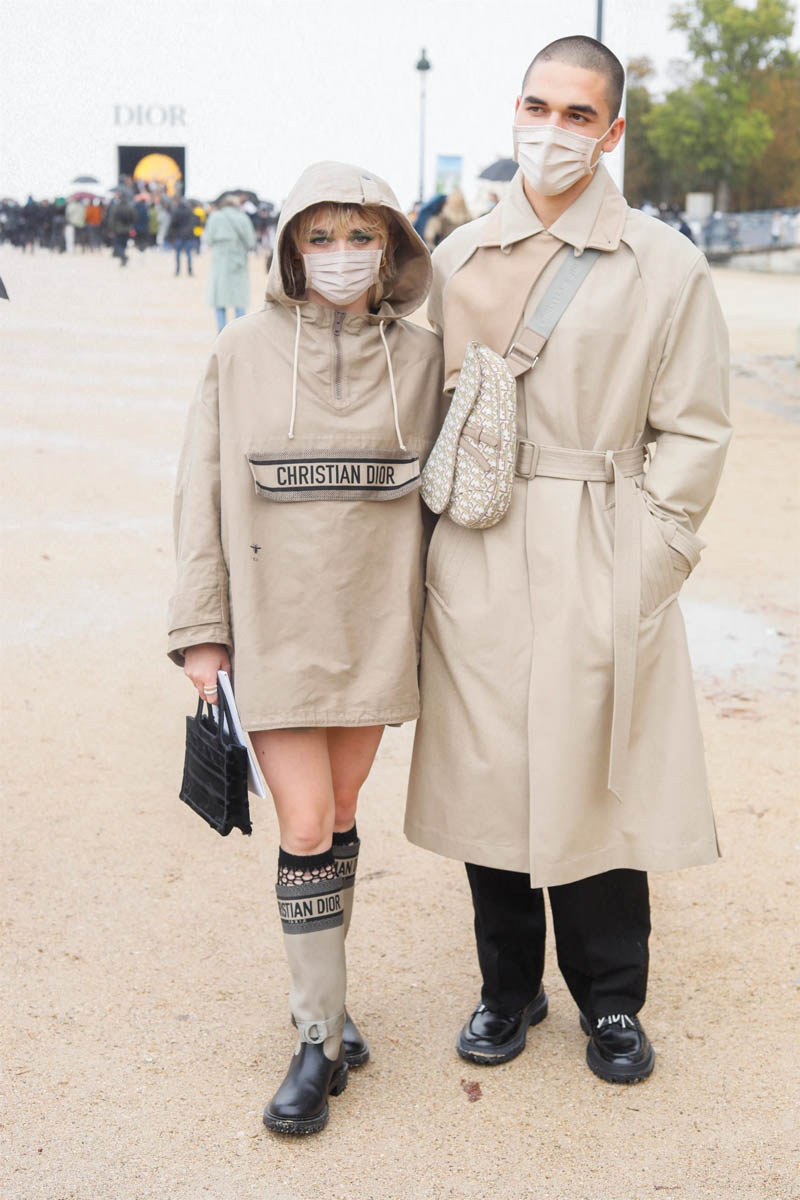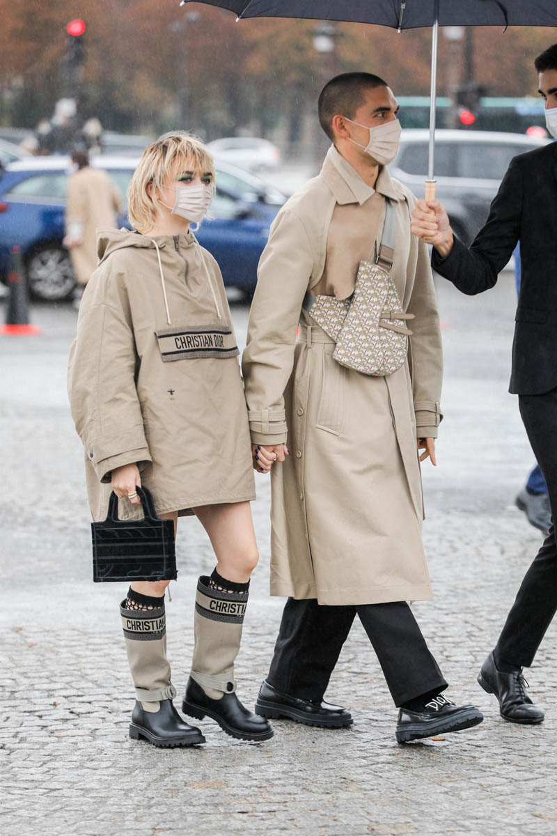 Maisie Williams and her boyfriend Reuben Selby showed up in matching Dior at the Dior show today in Paris. I do love this raincoat on her. And I love that she’s wearing it with no pants. The wellies are rad too.
