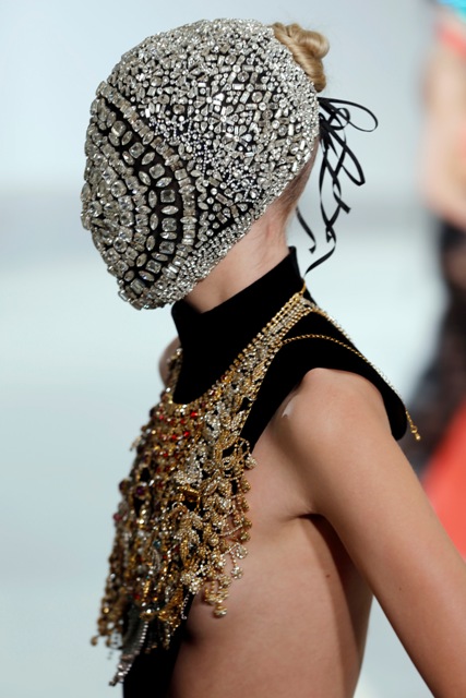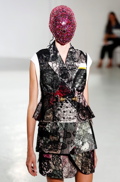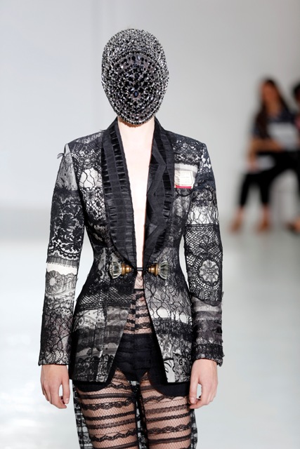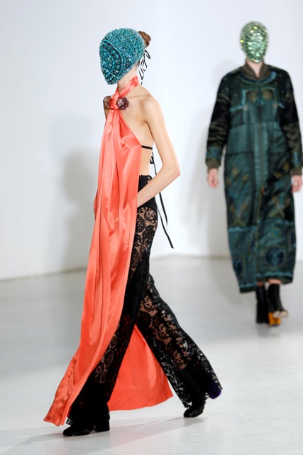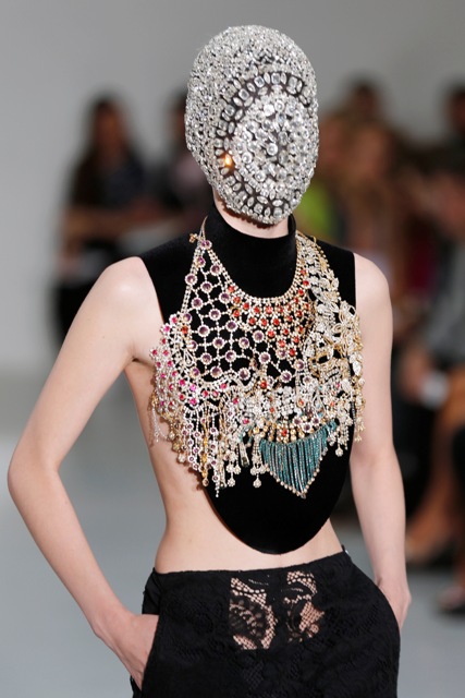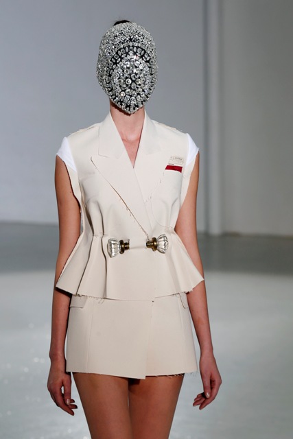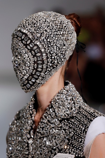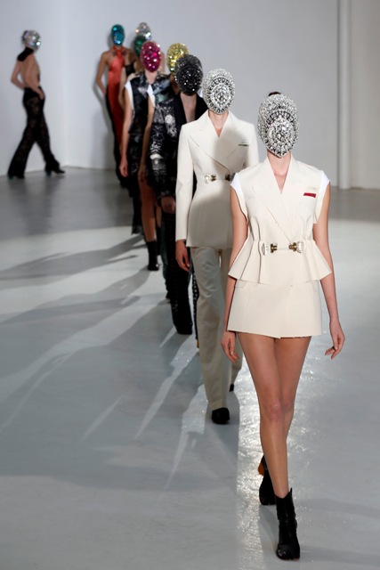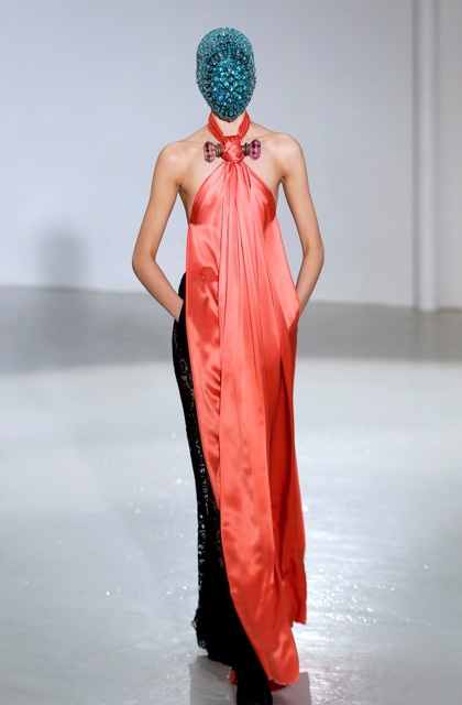 As far as I can see from the photos available to me, this entire collection is masked. First all, how can these girls walk like that? And next, doesn't it get gross with their breath and sweat all over? How do you disinfect couture?