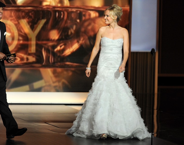 The woman has laughing eyes, doesn’t she? Mischevious eyes that make you think she kind of gets what’s up. She wants to be wearing the kinds of things Kerry Washington passes over because she doesn’t have a home for them. She should be taking the kind of risks that nobody took, tonight, but that have been associated in the past with a Danes, or a January Jones, even.