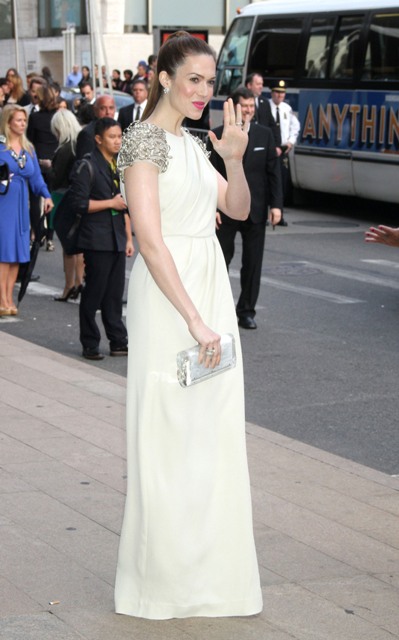 I am partial to capped sleeves. They are flattering on most people. Even more so when they’re tricked out like this on Mandy Moore. She’s tall so she carries the length of this very well.