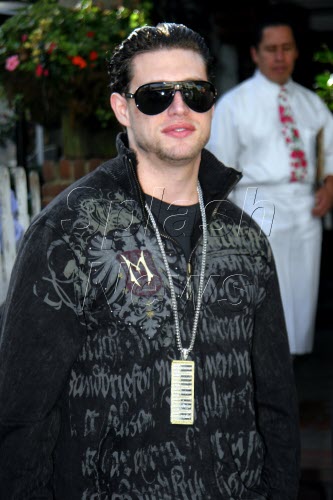 Look at this f*ckin’ tool. Britney’s new man, the one she was making out with, I can’t be bothered to learn his name. He might have a job and he may be helping her produce a decent record but still…why does she insist on dudes who look like degenerates??? The kind of punks you see at the Mall, practicing that faux limp, one oversized pant leg dragging behind the other, a pager in one hand, cell phone in the other, sucking on a toothpick, gesticulating with ring-adorned fingers surrounded by a crew of equally ravishing, barely employed young men who believe that the size of one’s posse is in direct proportion to the size of one’s penis, but who inevitably end the evening with a ride home on the bus. This apparently is what turns Britney’s shaved crank. And just a day after sticking his tongue down her throat, he shows up at The Ivy eager for the photo opp. Too bad he’s absolutely revolting. Suddenly Marc Anthony doesn’t seem to bad, non? Source