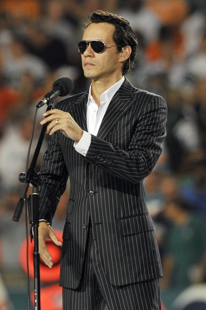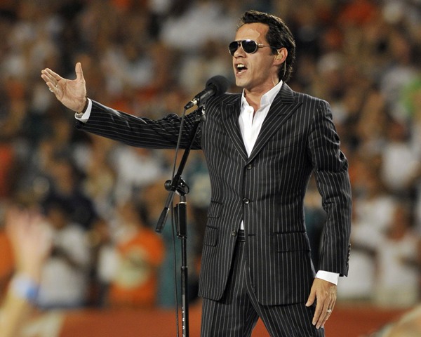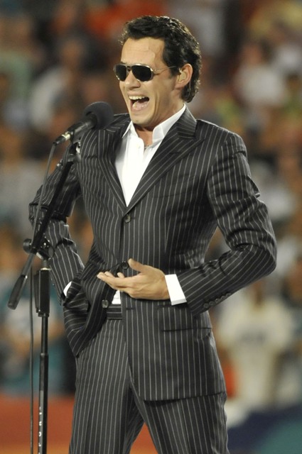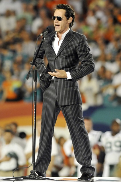 Anyway, it was a close game. In the end, victory belonged to me. Oh yeah and Marc Anthony too. As you know, he’s part owner now of the Miami Dolphins. So he sang the national anthem at the beginning with the kind of body language you’d expect for a sex ballad, then retreated to the owner’s box with his wife who clearly does not know the network cutaway schedule. And this is a problem. And she’s powerless to control it.