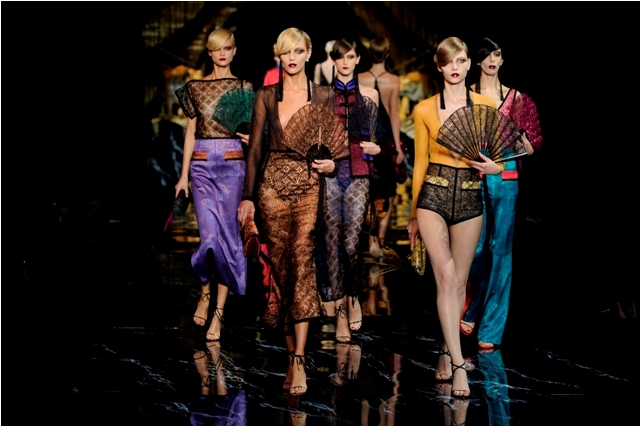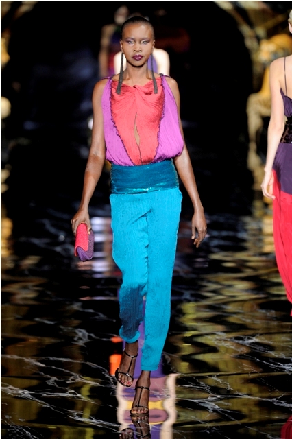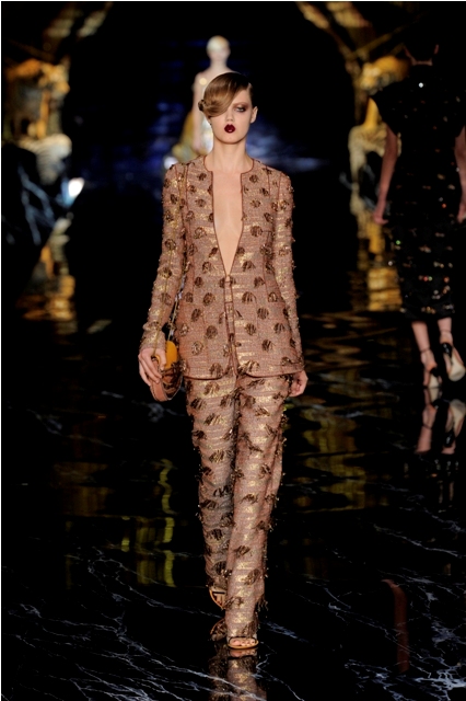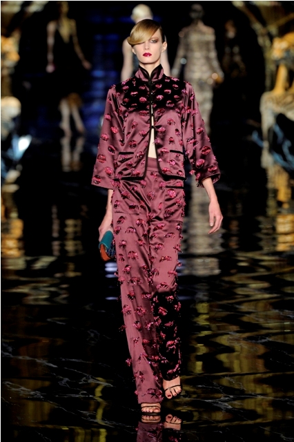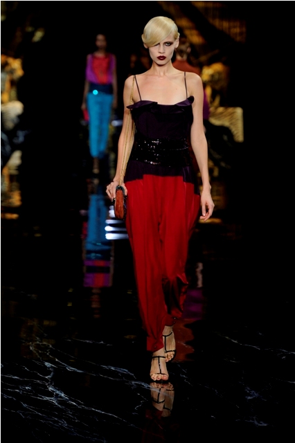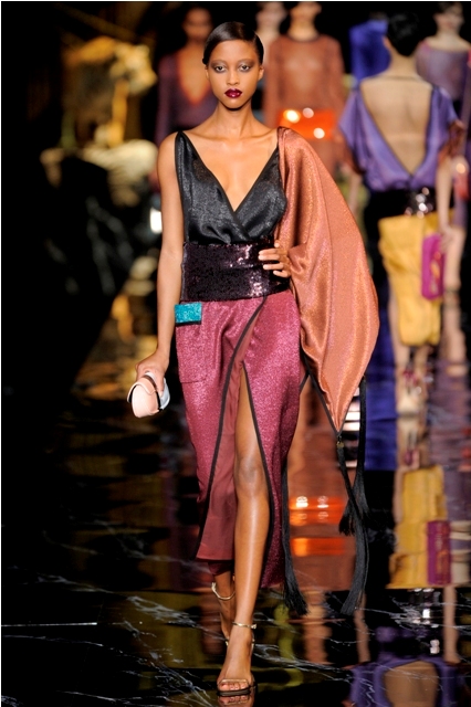 I wasn’t feeling Elie Saab. But I am totally feeling Marc Jacobs’s eastern vision for Louis Vuitton SS2011 presented yesterday in Paris. Kirsten Dunst is all over this. Leighton Meester too. And Maggie Gyllenhaal, obviously. Would love to see Kristen Stewart shake it up in a few of these pieces. And Christina Hendricks in that yellow and black. Or Hilary Swank at the Golden Globes. Ugh. You know she’ll be there.