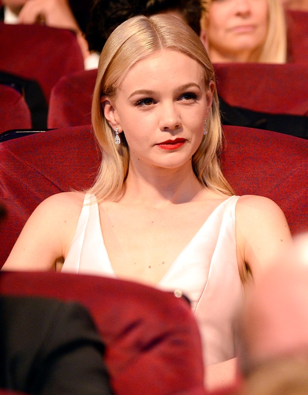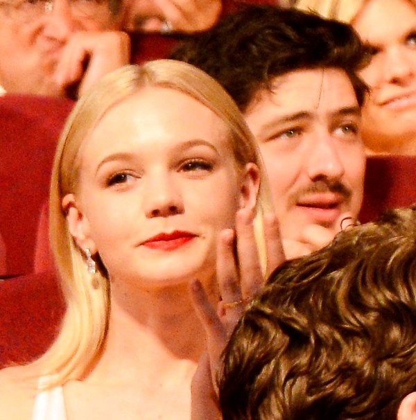 Many of you have been asking whether or not Marcus Mumford was in Cannes with Carey Mulligan last night at The Great Gatsby opening. He was. If you can get past Leonardo DiCaprio, he’s sitting behind Carey in the theatre. I wonder if she made it through the entire film without leaving. She says she can’t stand watching herself.