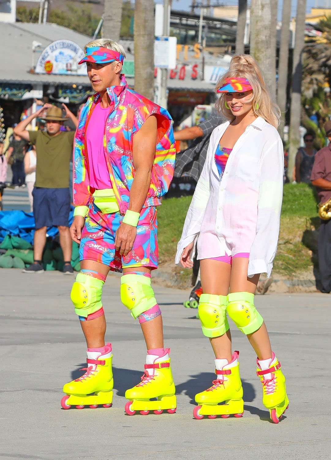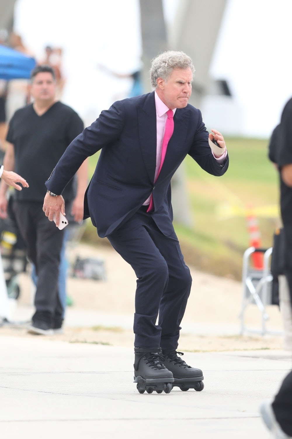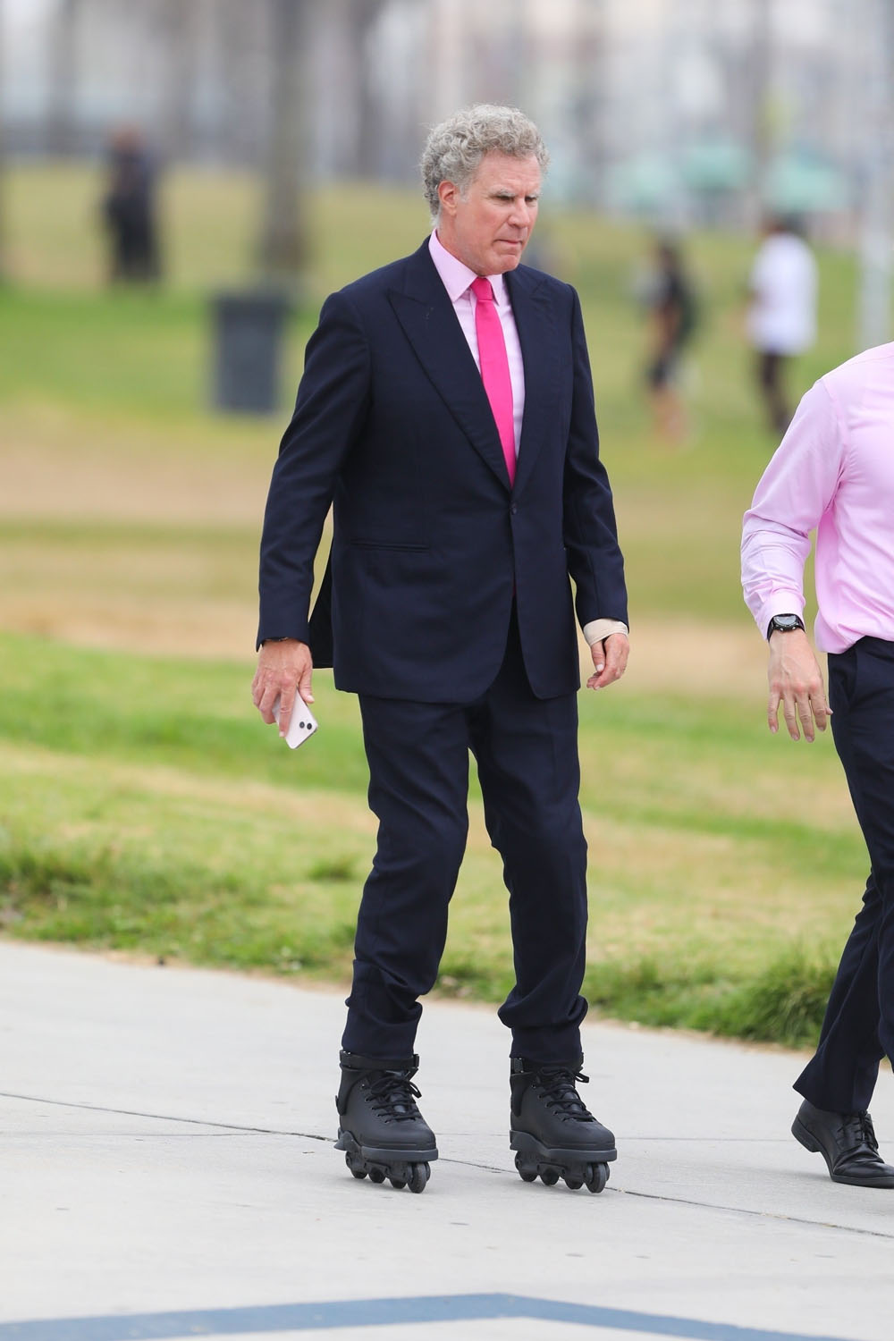 Yesterday I posted photos of Margot Robbie and America Ferrera rollerblading on the set of Greta Gerwig’s Barbie movie. I guess everyone in the movie rollerblades because now we have shots of Ryan Gosling and Will Ferrell also rollerblading and …what is this movie?!