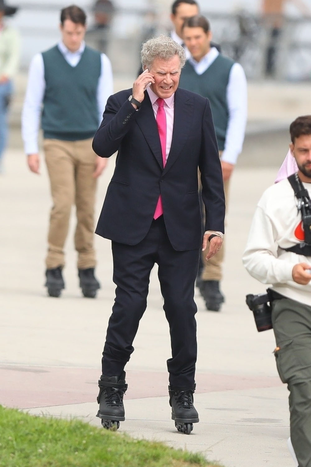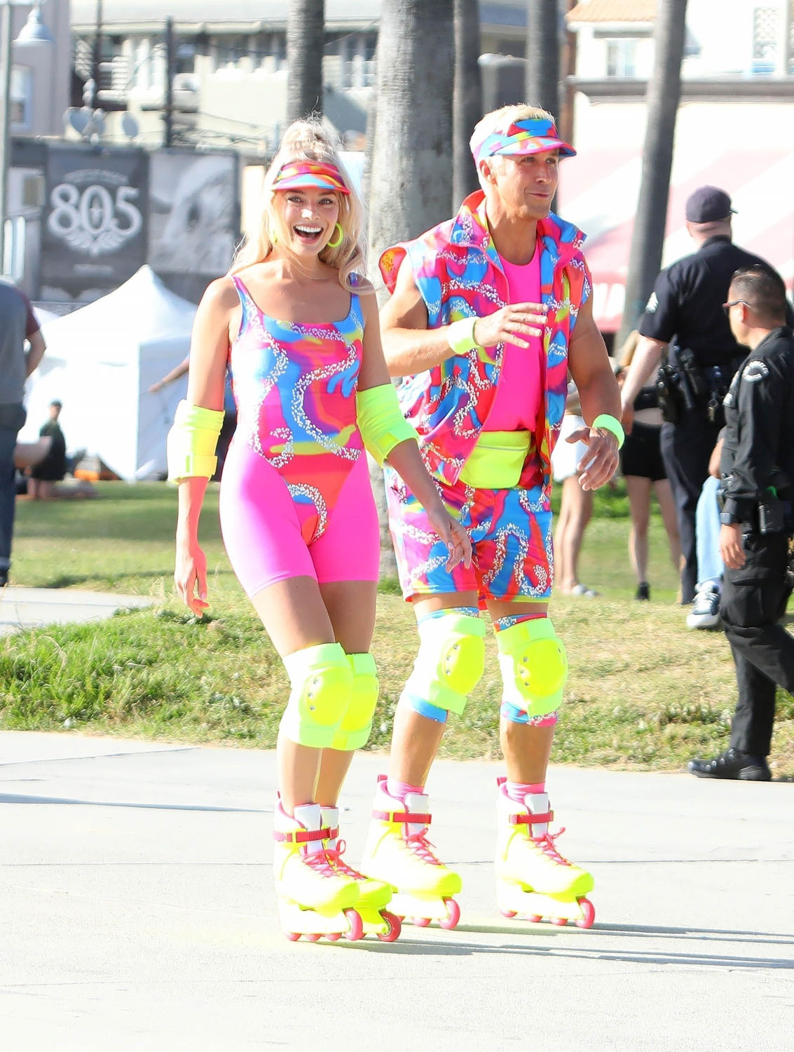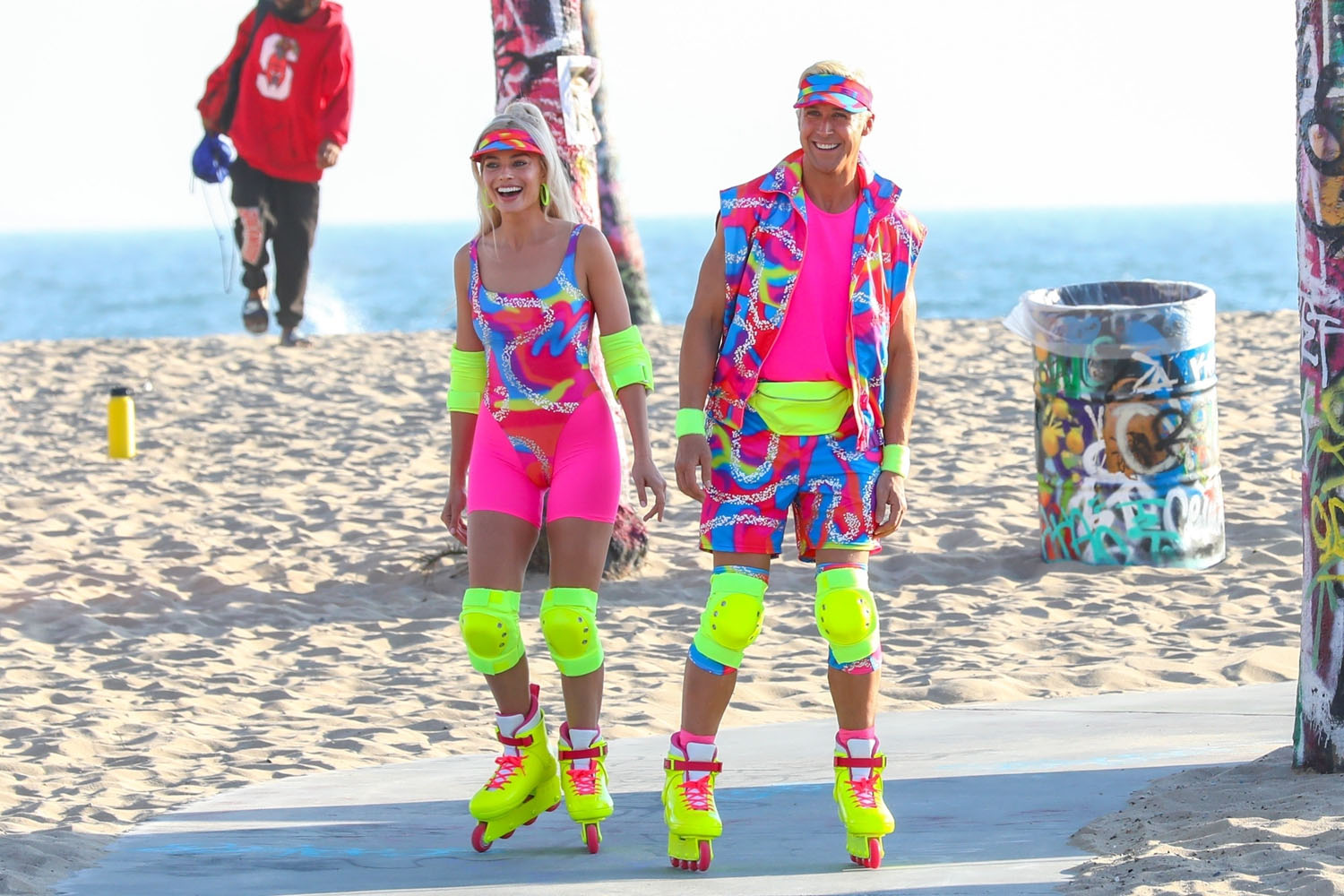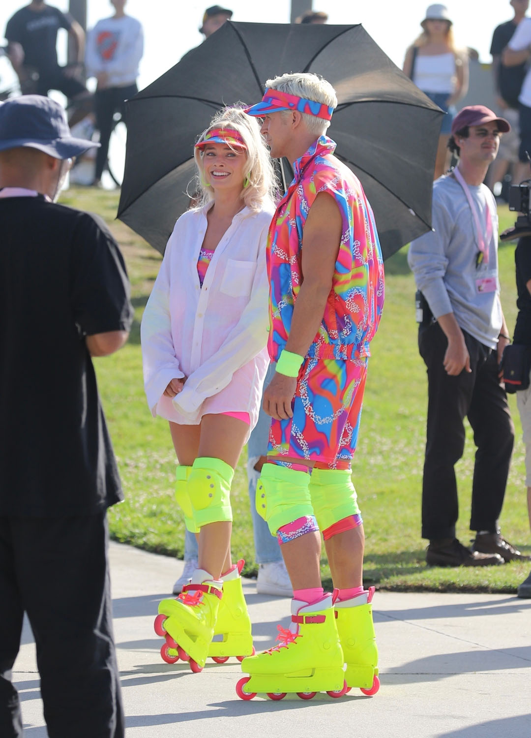 Yesterday I posted photos of Margot Robbie and America Ferrera rollerblading on the set of Greta Gerwig’s Barbie movie. I guess everyone in the movie rollerblades because now we have shots of Ryan Gosling and Will Ferrell also rollerblading and …what is this movie?!