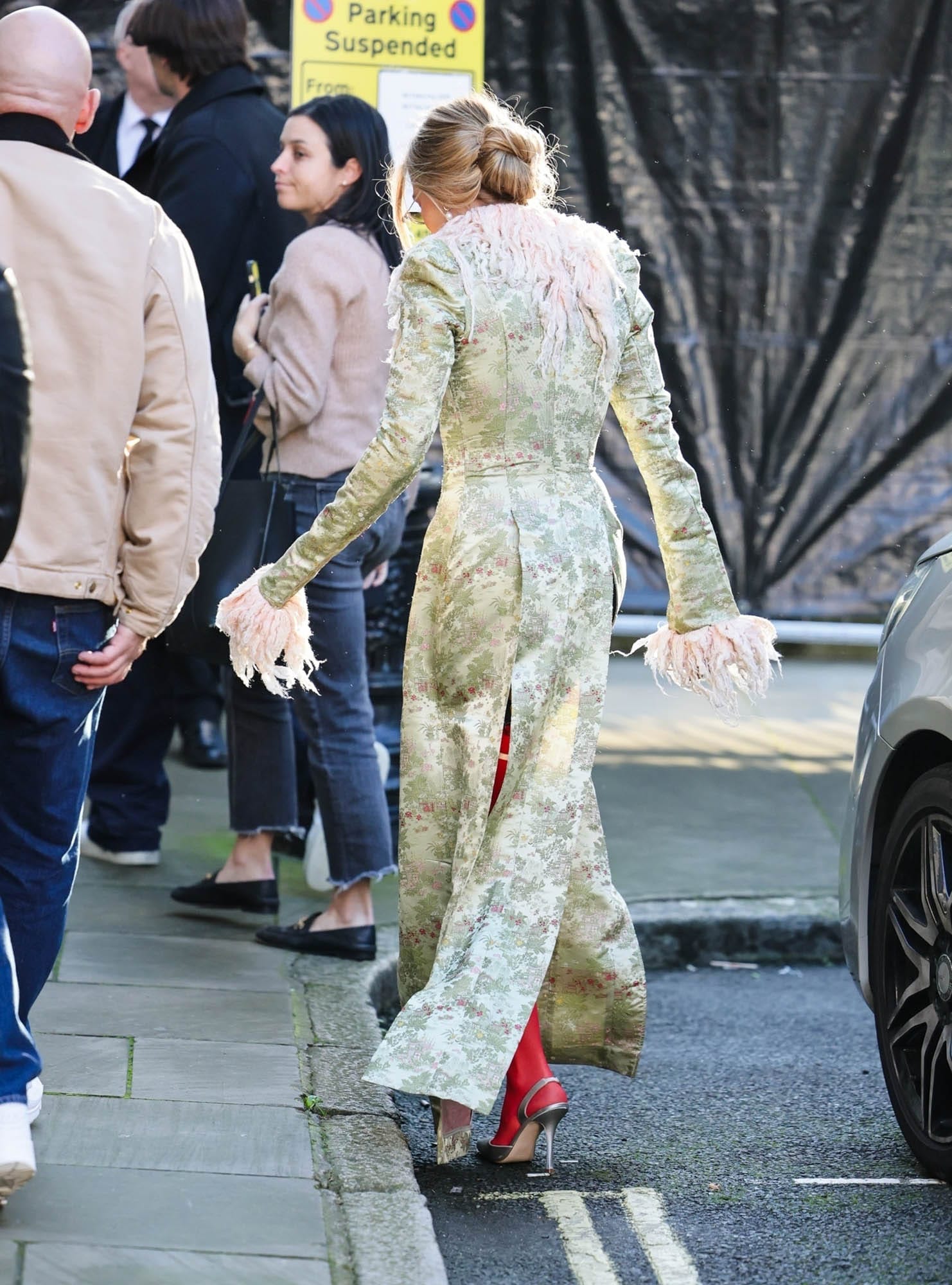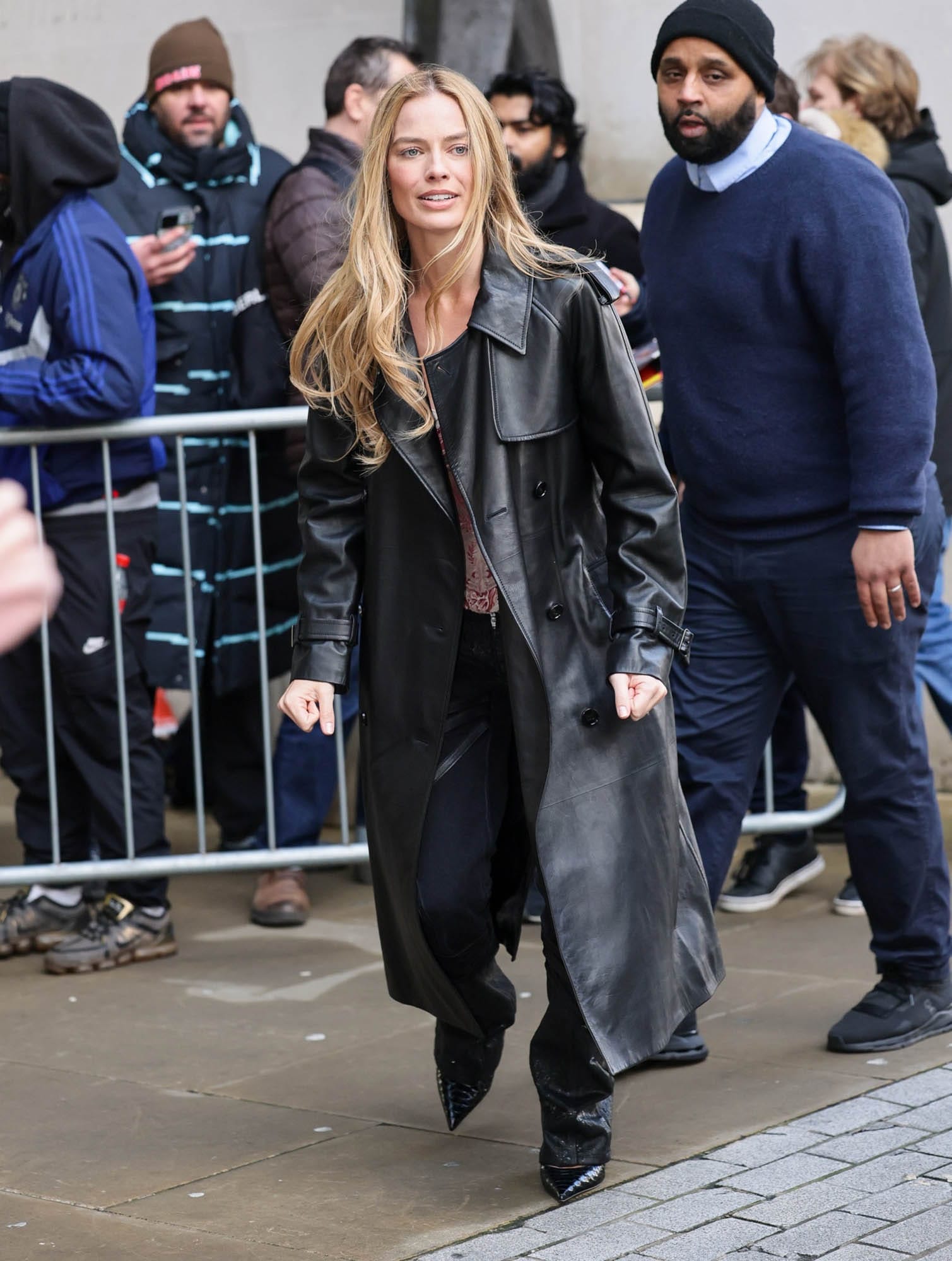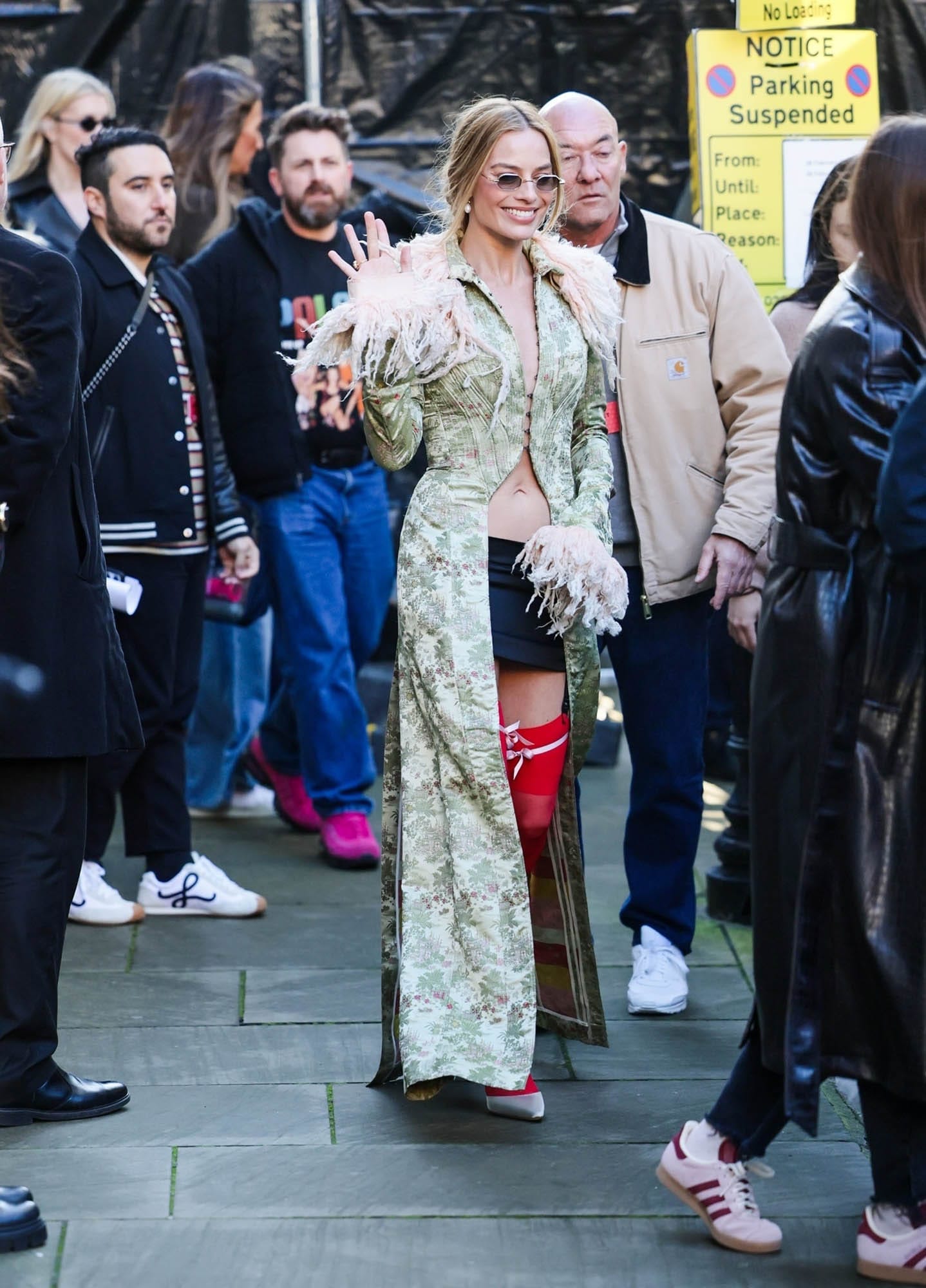Margot Robbie at the London photocall of "Wuthering Heights" at Spencer House on February 04, 2026 in London, England, and at BBC Radio One in London, February 4, 2026