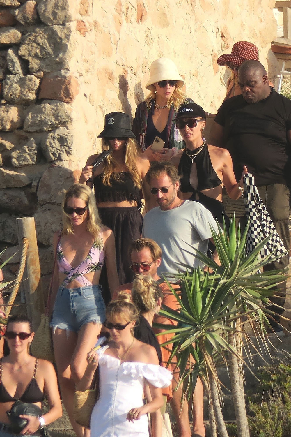 It’s yacht season, celebrities are on holiday, and many of them have been seen in Italy and or the South of France. This is not where we find Cara Delevingne, her sister Poppy, Sienna Miller, and Margot Robbie. They’re still on the water but they’ve chosen Formentera, Spain instead, and were seen together on the beach after leaving a restaurant the other day.