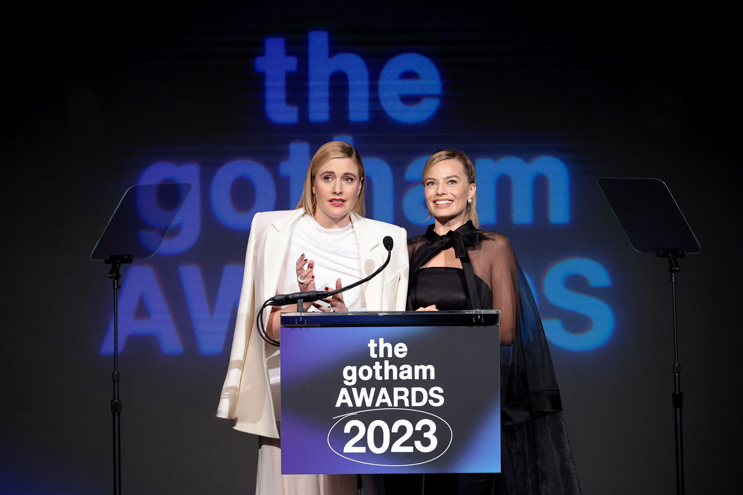 Because the Gotham Awards removed their budget cap on eligible films—meant to direct the awards toward the indie sector—Barbie was eligible this year. They only got one nomination, for Ryan Gosling who was a no-show, but most of Team Barbie showed up as they were also recipients of the new Global Icon and Creator Tribute.